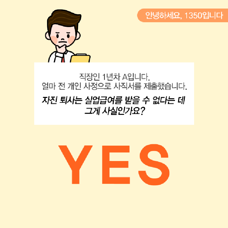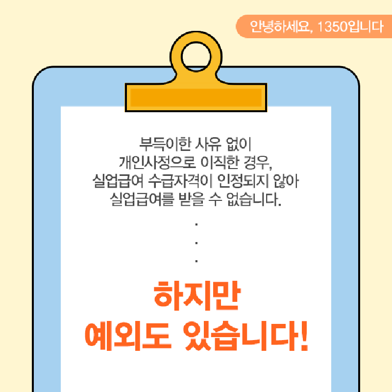 자진퇴사햇을 경우에는 실업급여를 받을 수 없는데요. 부득이한 사유없이 개인사정으로 이직한 경우 실업급여 수급자격이 인정되지 않습니다.