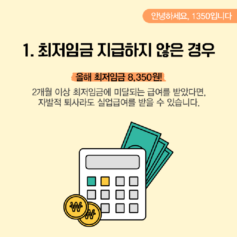 2개월 이상 최저시급으로 급여를 받지 못햇을 경우에 실업급여 대상이 된다고 해요.