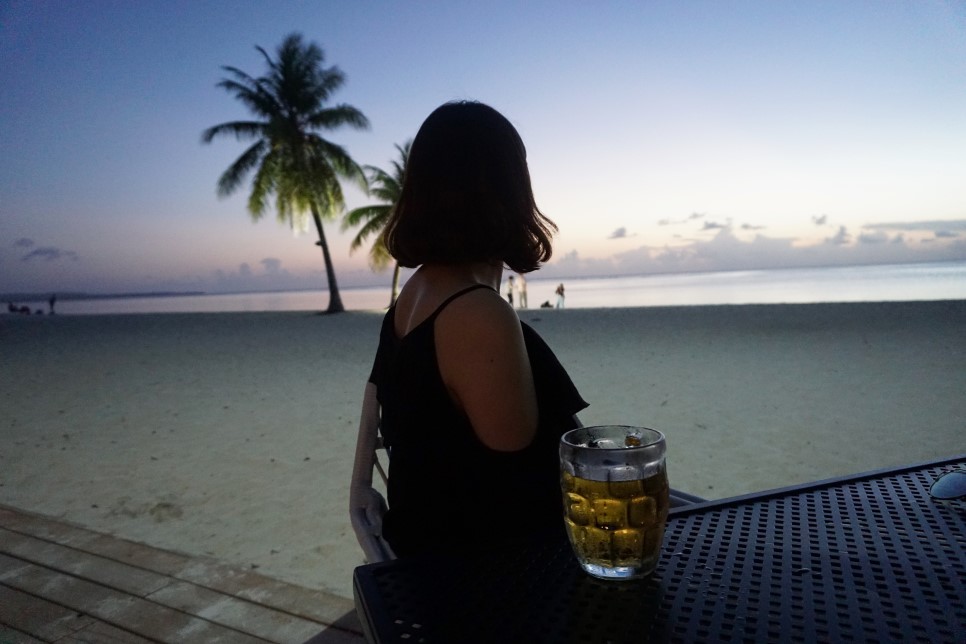 시간가는줄 모르고 원없이 사진을 찍고 오니 맥주한잔도 나오고 어느새 해도 져서 멋스러웠어요. 사이판 여행중에서 밤을 가장 아름답게 눈에 담을 수 있었던 곳이에요. 실루엣 사진도 재밌게 찍을 수 있었어요.ㅎ