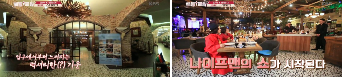 즉석에서 고기를 썰어주고, 화려한 불쇼가 인상적인 바쿠 스테이크 식당이에요.