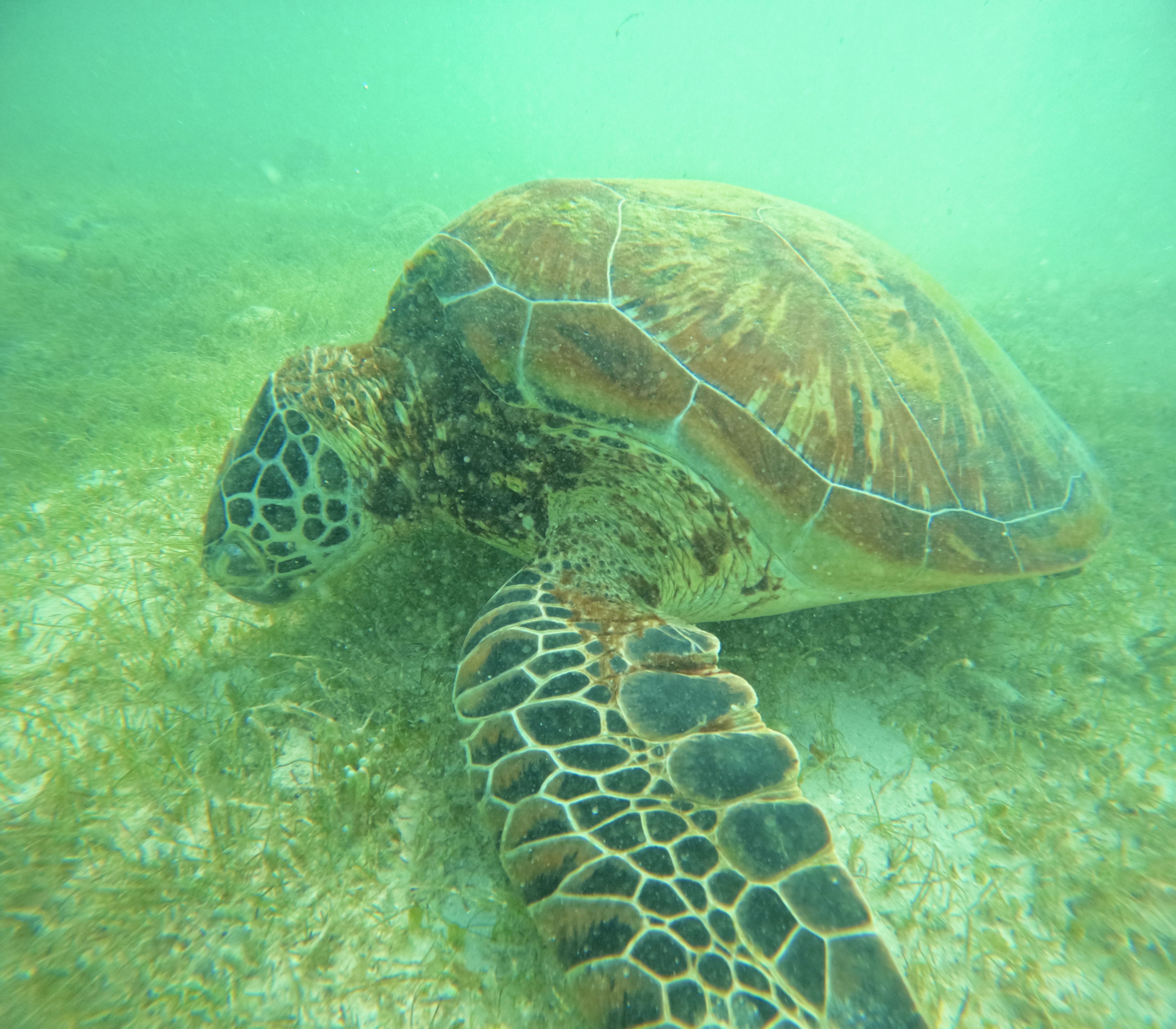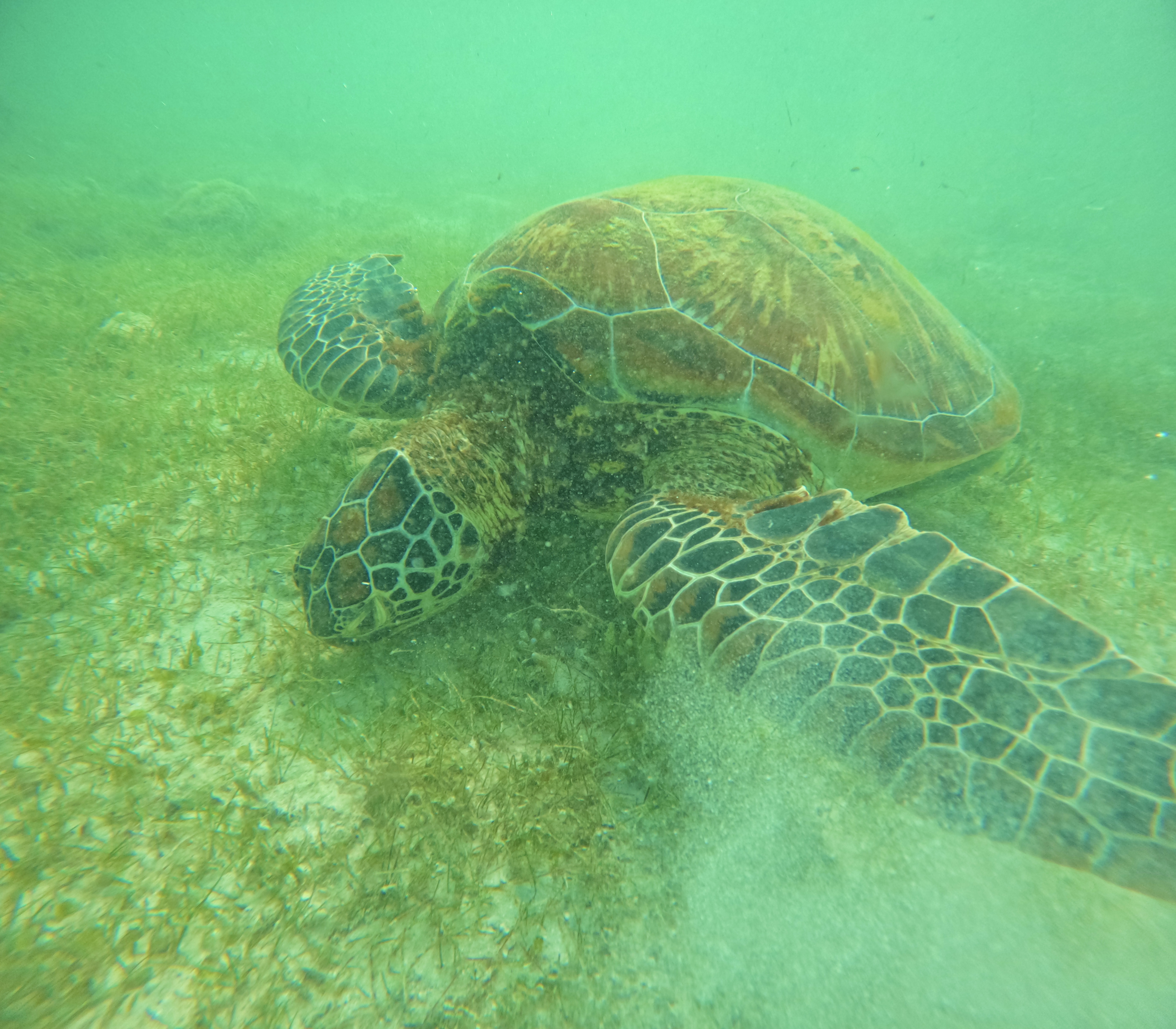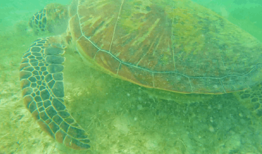 육지랑 가까운 곳인데 거북이가 밥을 먹고 수영을 하는거에요!