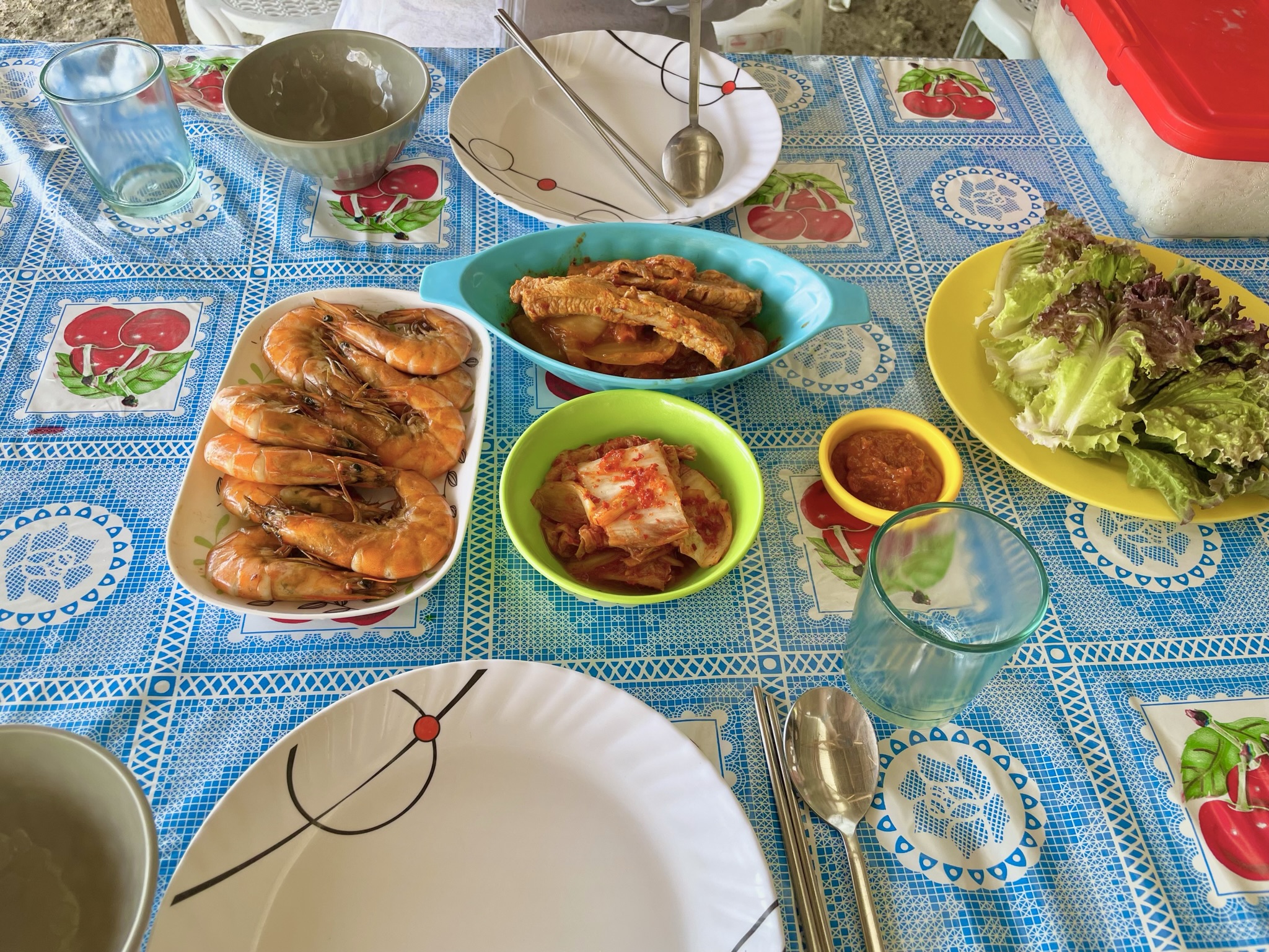 맥주 한 병 나눠먹고 라면도 나눠먹고, 바닷물을 많이 마셔서 그런지 밥이 잘 넘어가지 않았지만 푸짐했어요.