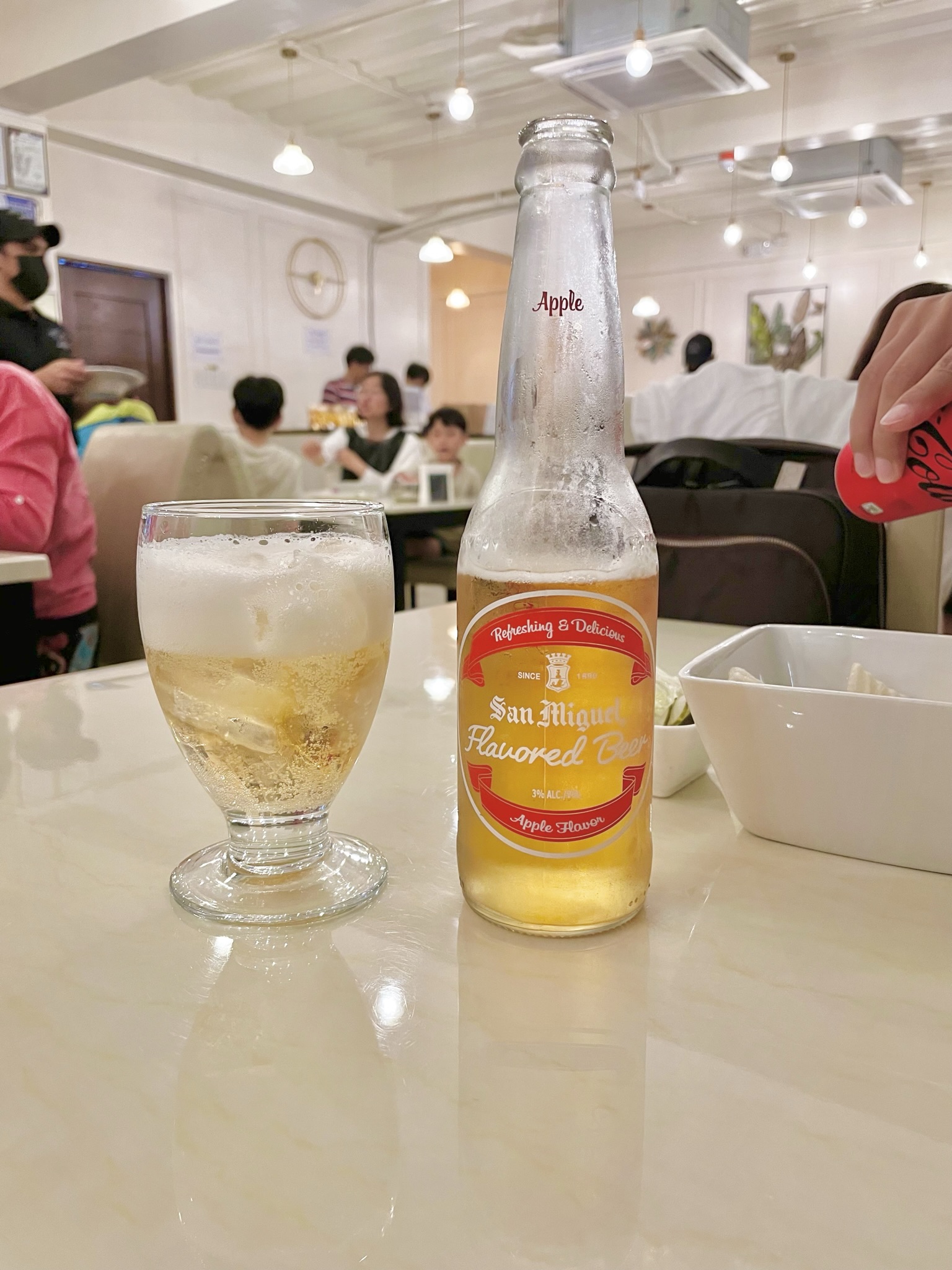 메뉴를 주문하고 시원하게 산미구엘 애플도 주문했어요.