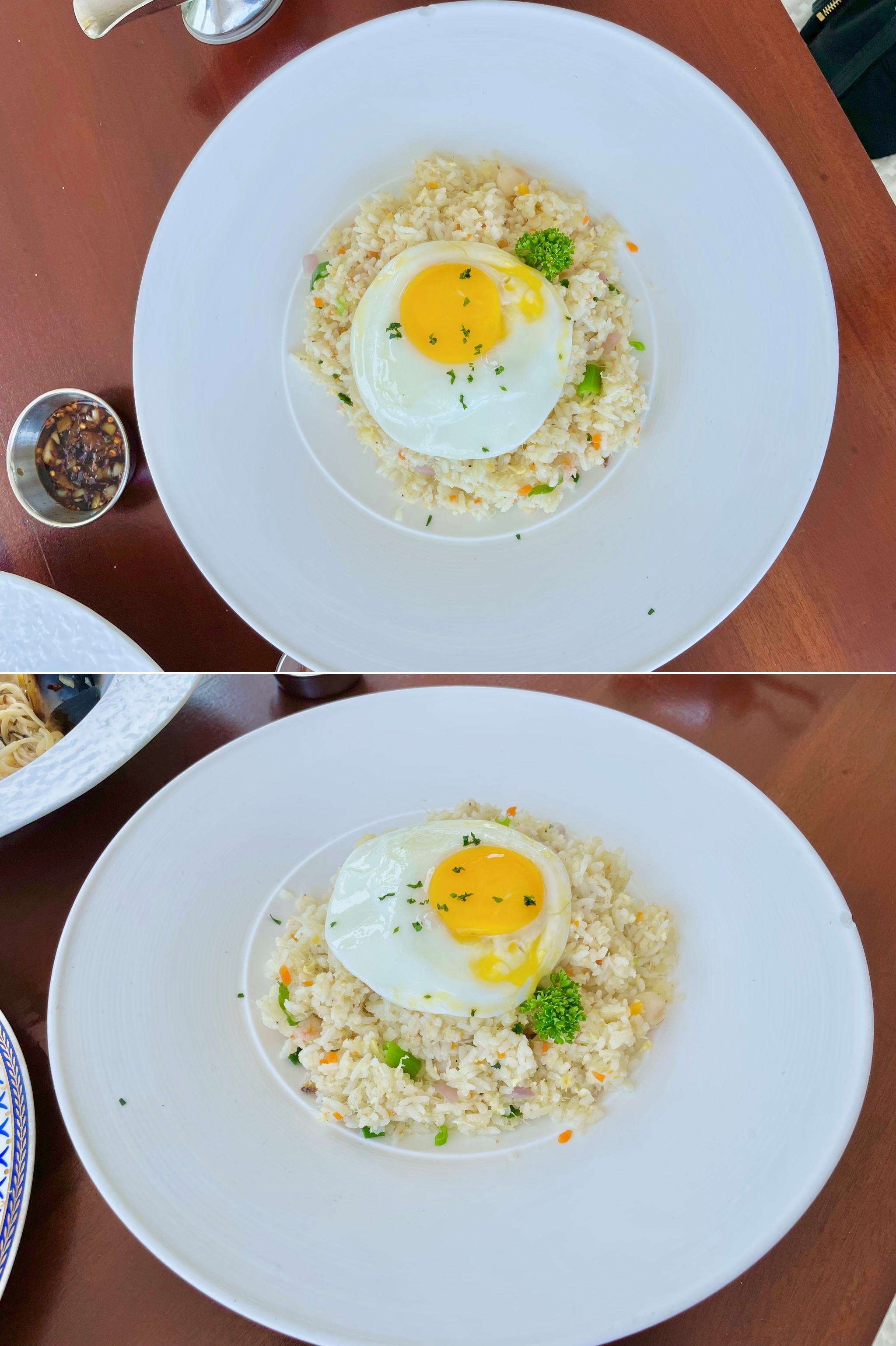 계란이 올려져 있고 게살도 다져져 있는 맛있는 볶음밥!