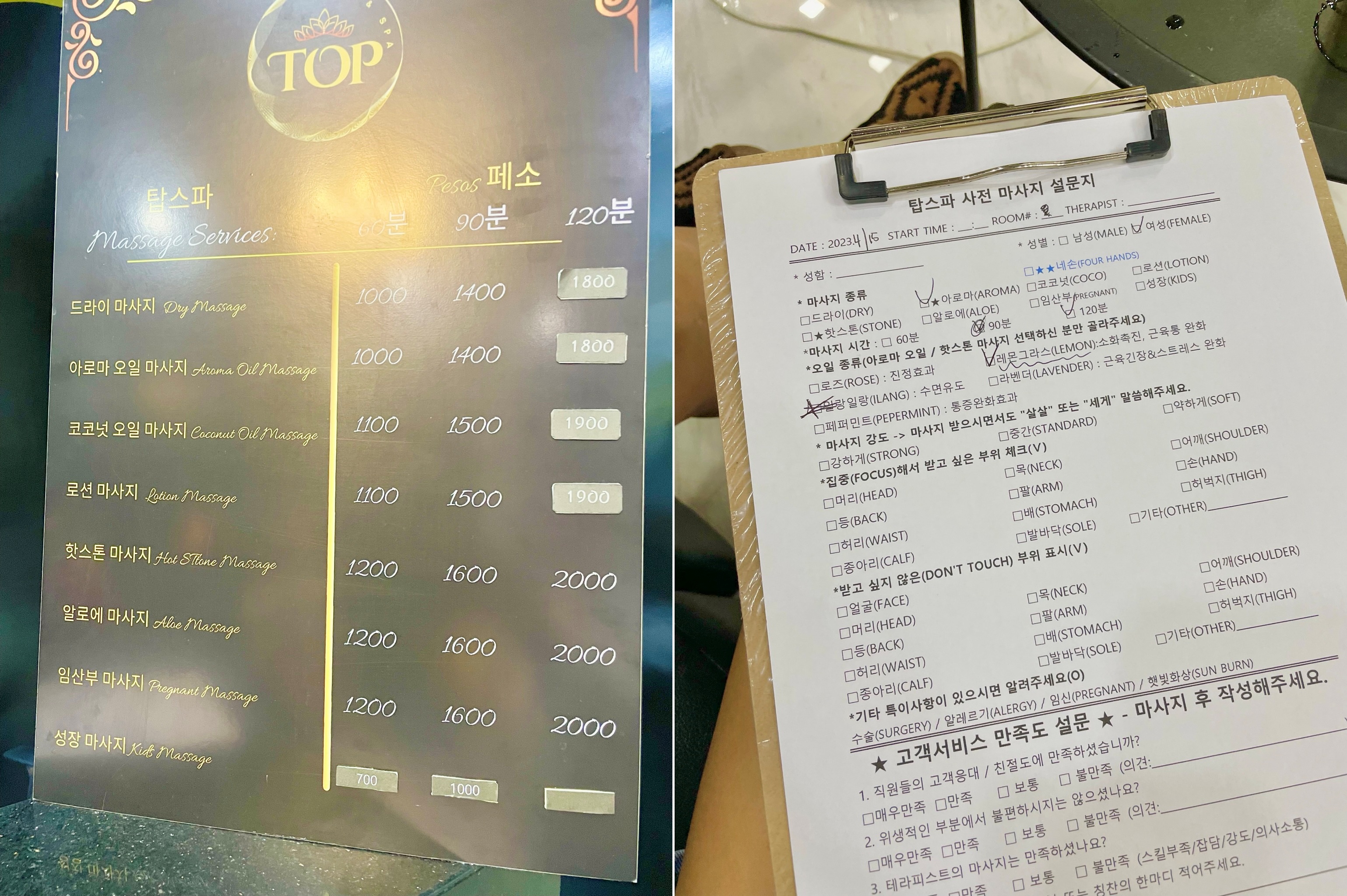 1인에 500페서 식사권도 받으니 마사지를 500페소 저렴하게 받은 꼴이 되더라고요.