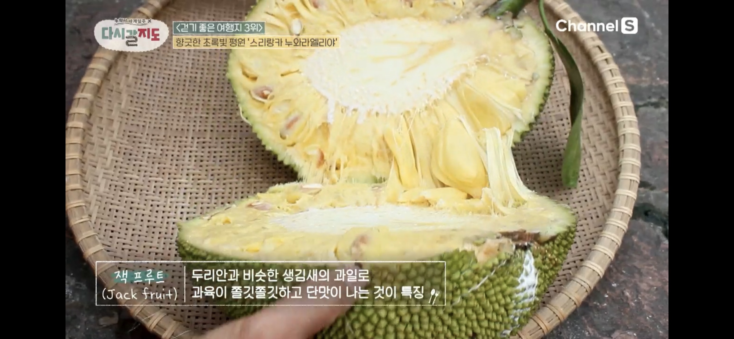 초록색은 오이장아찌 느낌의 짭짭하고 자주색은 달달해요. 고기처럼 생긴건 잭푸르트인데요. 두리안과 비슷하게 생긴 잭푸르트는 과육이 쫄깃하고 단맛이 나는게 특징이랍니다. :)