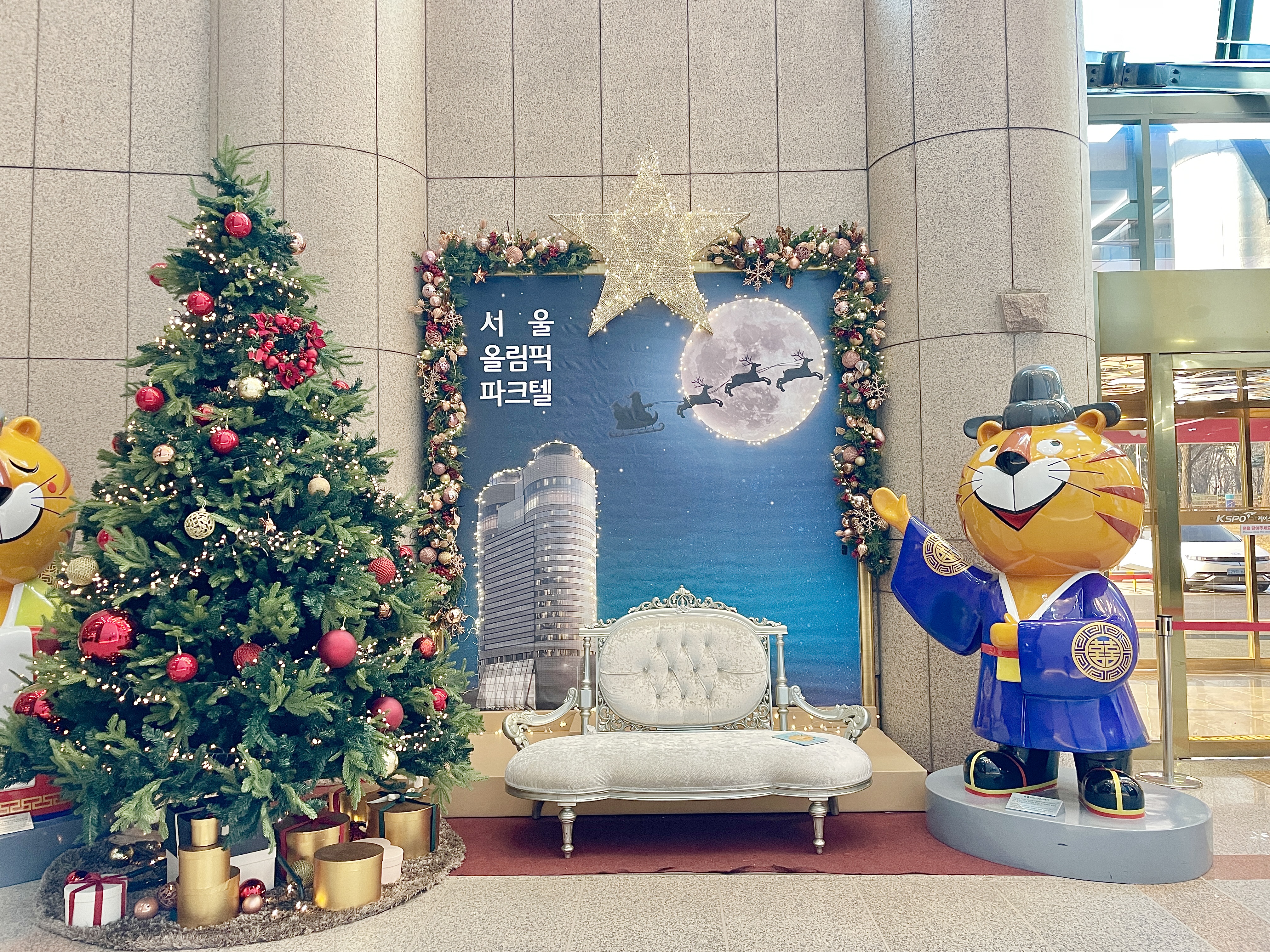1일차 병원 진료를 끝나고 호텔 체크인을 했다. 아산병원에서 멀지 않아서 걸어서 가도 좋을 거리였다. 연말 분위기가 났던 올림픽 파크텔. 주차장도 넓어서 여행하시는 분들도 주차 걱정은 없을 듯 보였다.