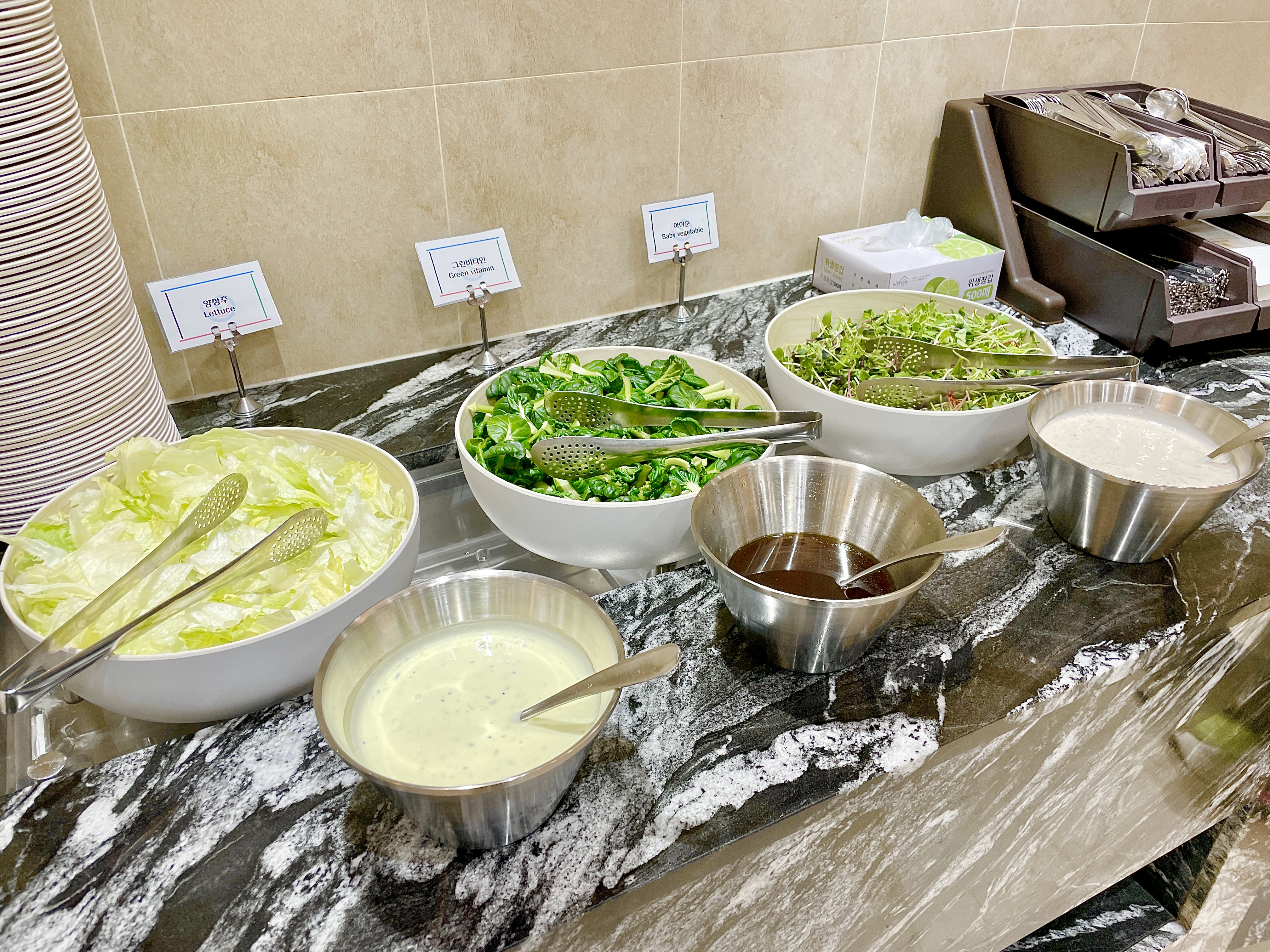 샐러드 종류도 다양했고 빵, 죽, 한식 등등 원하는 음식을 골라먹는 재미가 쏠쏠 :)
