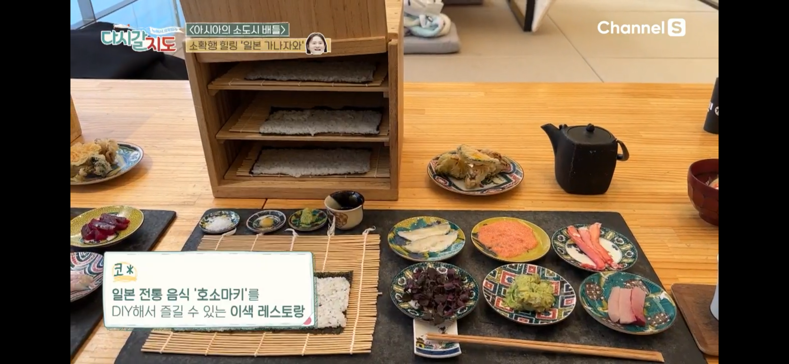 코일은 호소마키를 직접 만들어 먹을 수 있는 맛집인데요. 하코마치 쇼핑몰 안에 위치한 레스토랑으로 예약이 필수라고 해요.