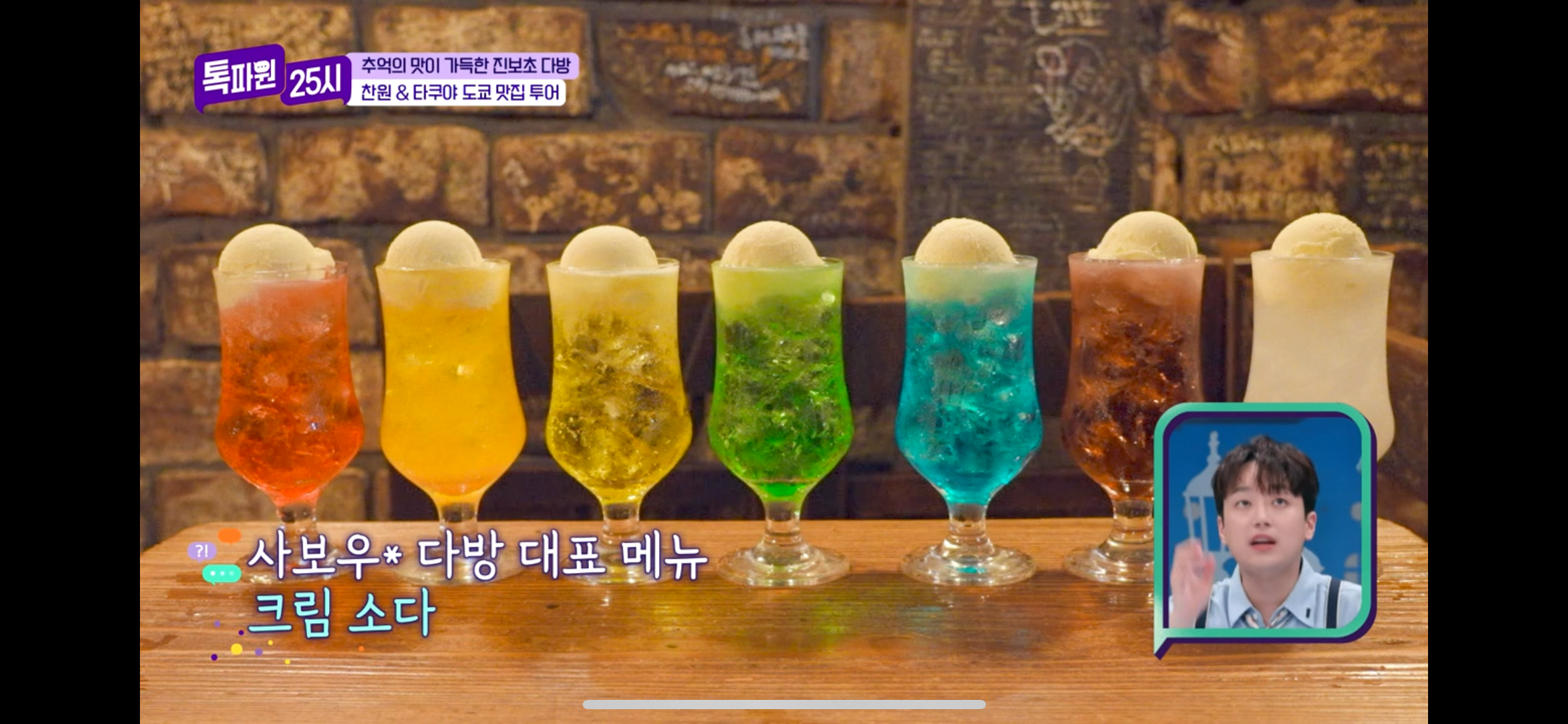 도쿄 진보초 사보루는 일곱가지 빛깔의 크림소다가 핫하다고 해요. 탄산음료와 아이스크림의 조합!