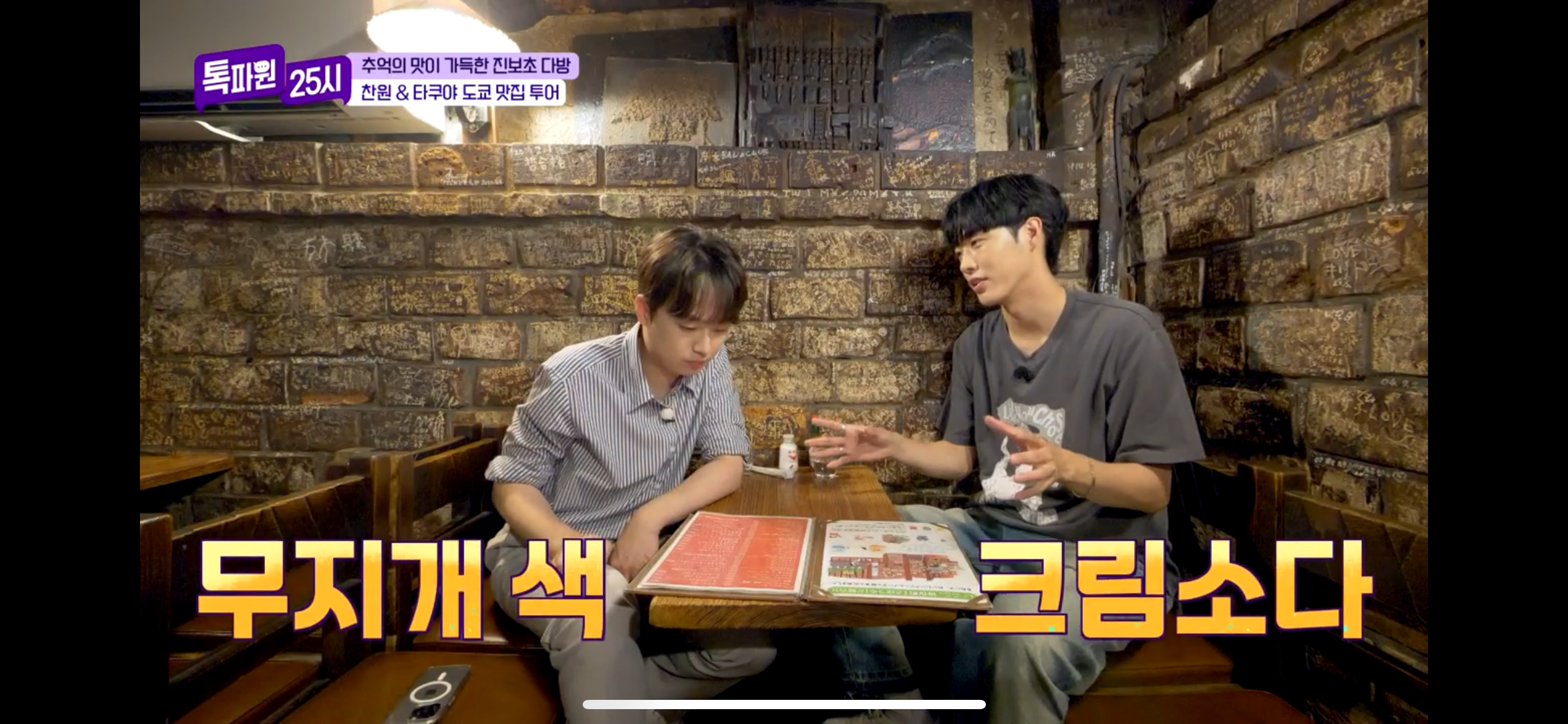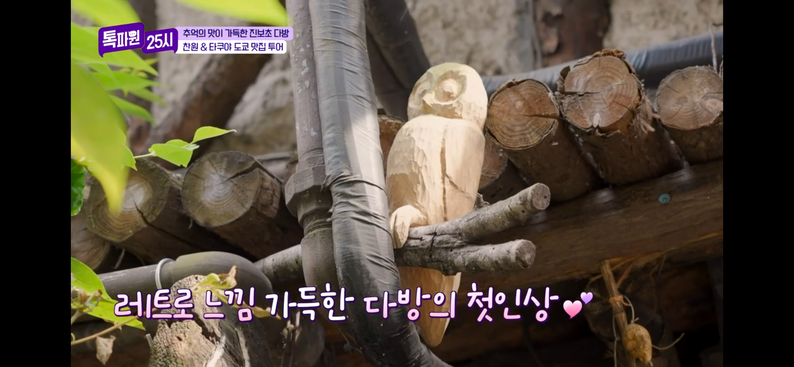 레트로 느낌 가득한 다방! 내부는 따뜻한 분위기의 나무 인테리어로 되어 있는데요. 한 편에 쌓인 소품들이 레트로한 분위기를 더 내 주는것 같아요. 세월을 증명해주는 듯 돌 벽을 가득 채운 방명록.