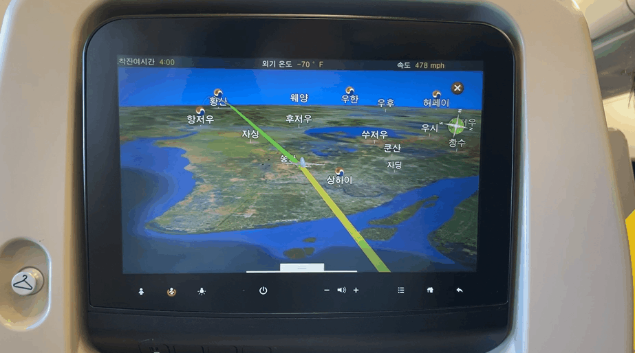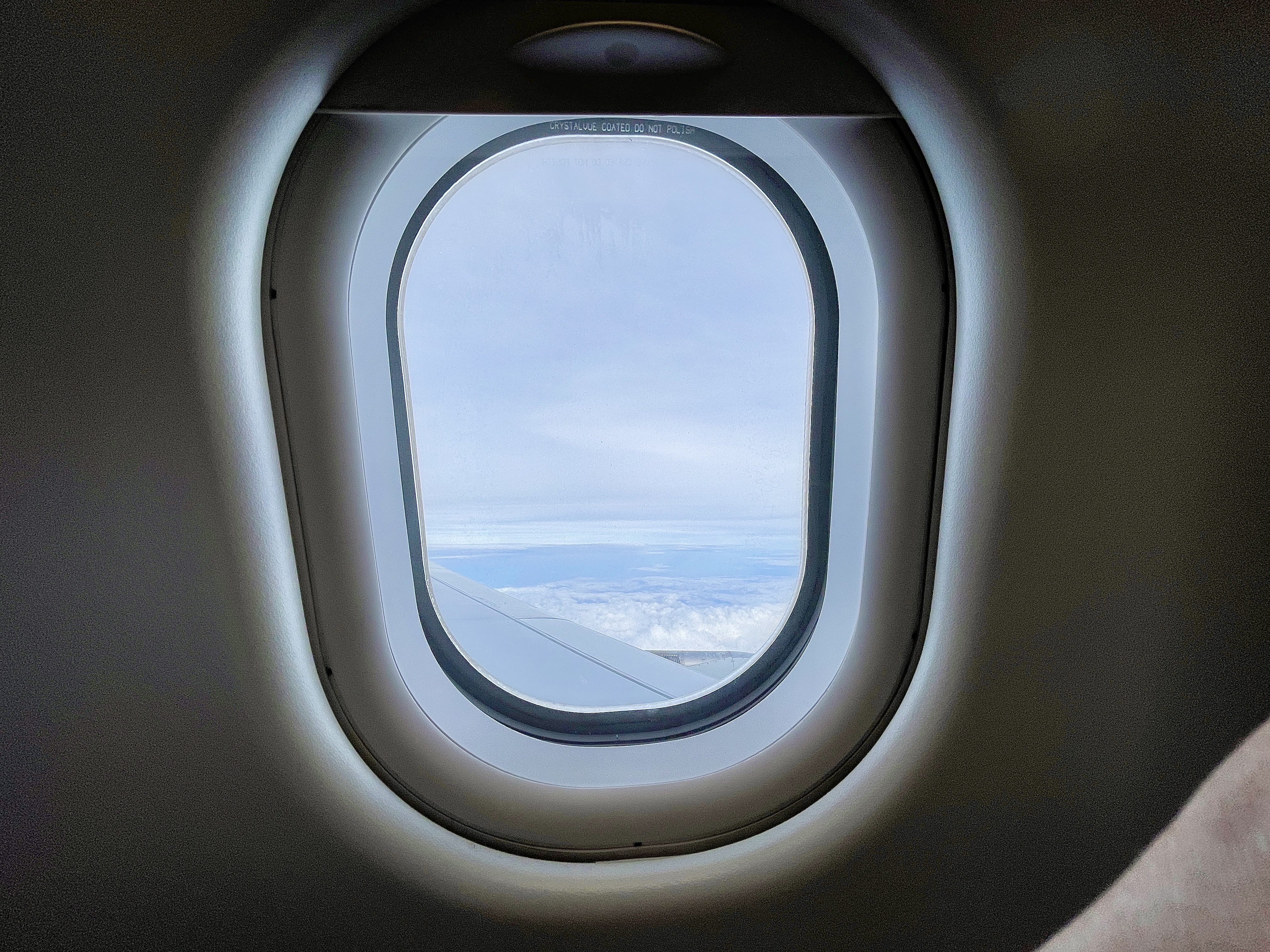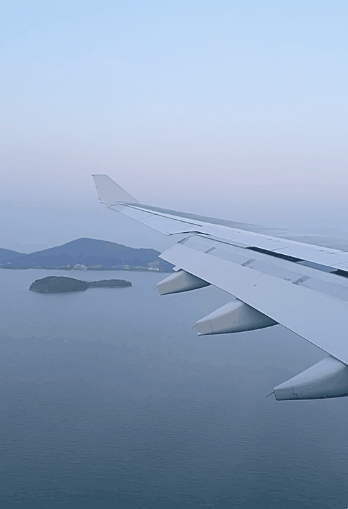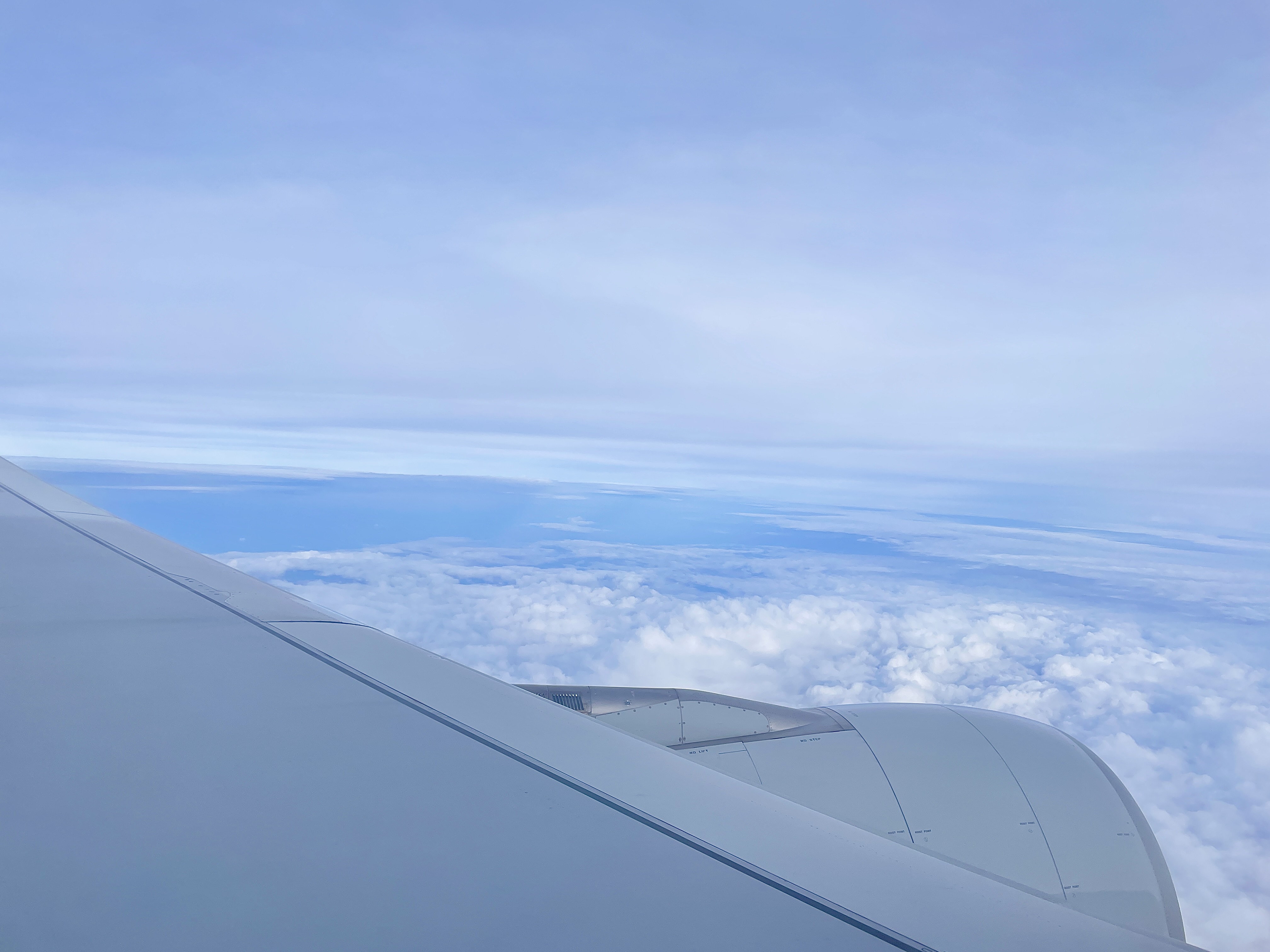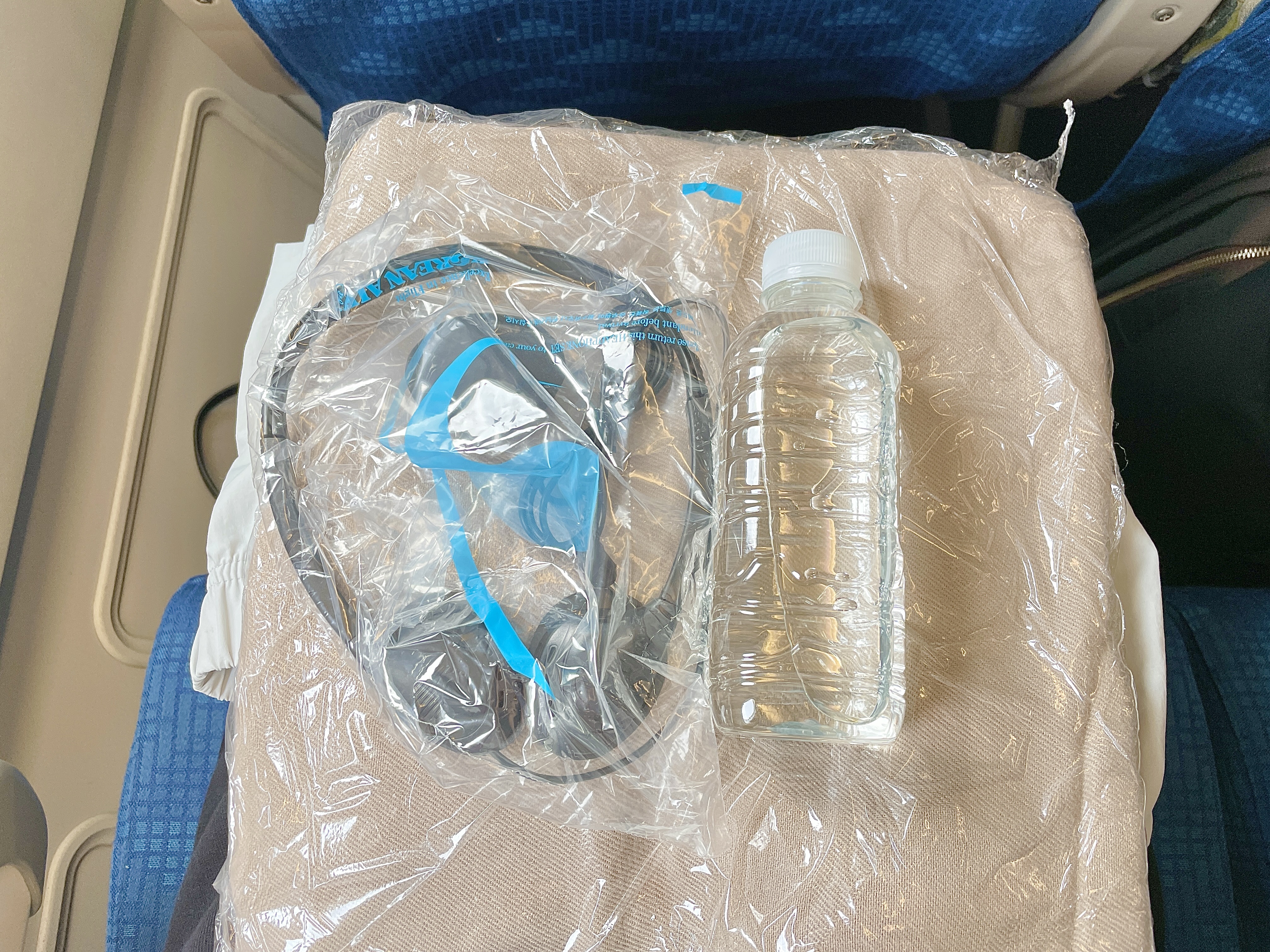 좌석 위에 올려져 있던 생수 한 병과 담요, 헤드셋! 치앙마이 갈 때는 USB 충전포트가 없었는데 돌아오는 비행기에는 있더라고요. 밤 비행기가 아니라서 예쁜 하늘도 볼 수 있어서 행벅 ♥