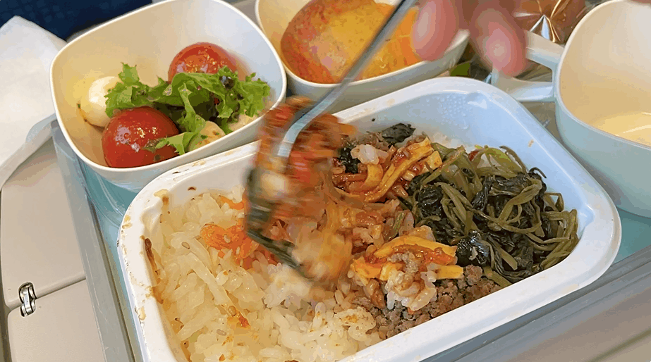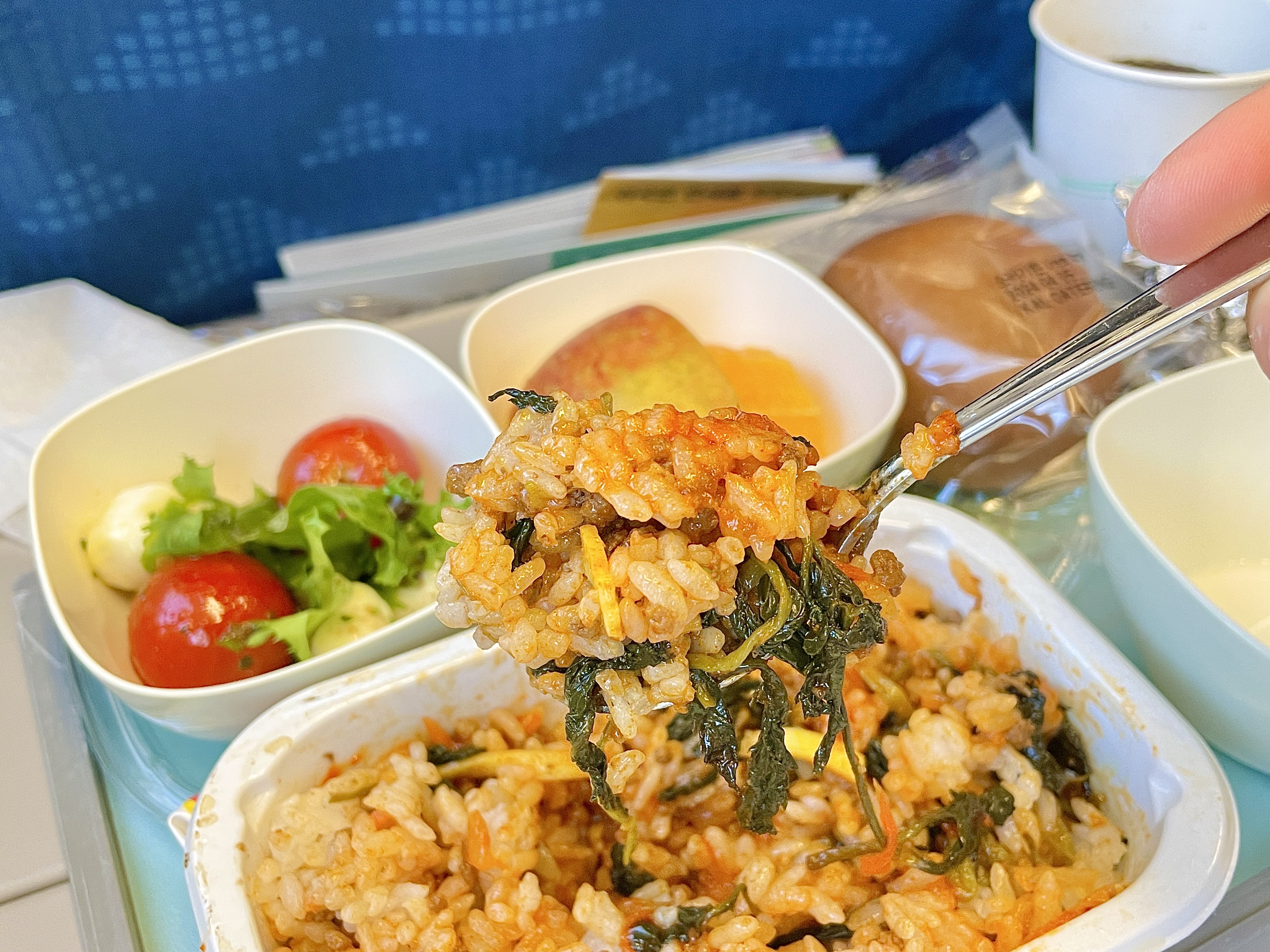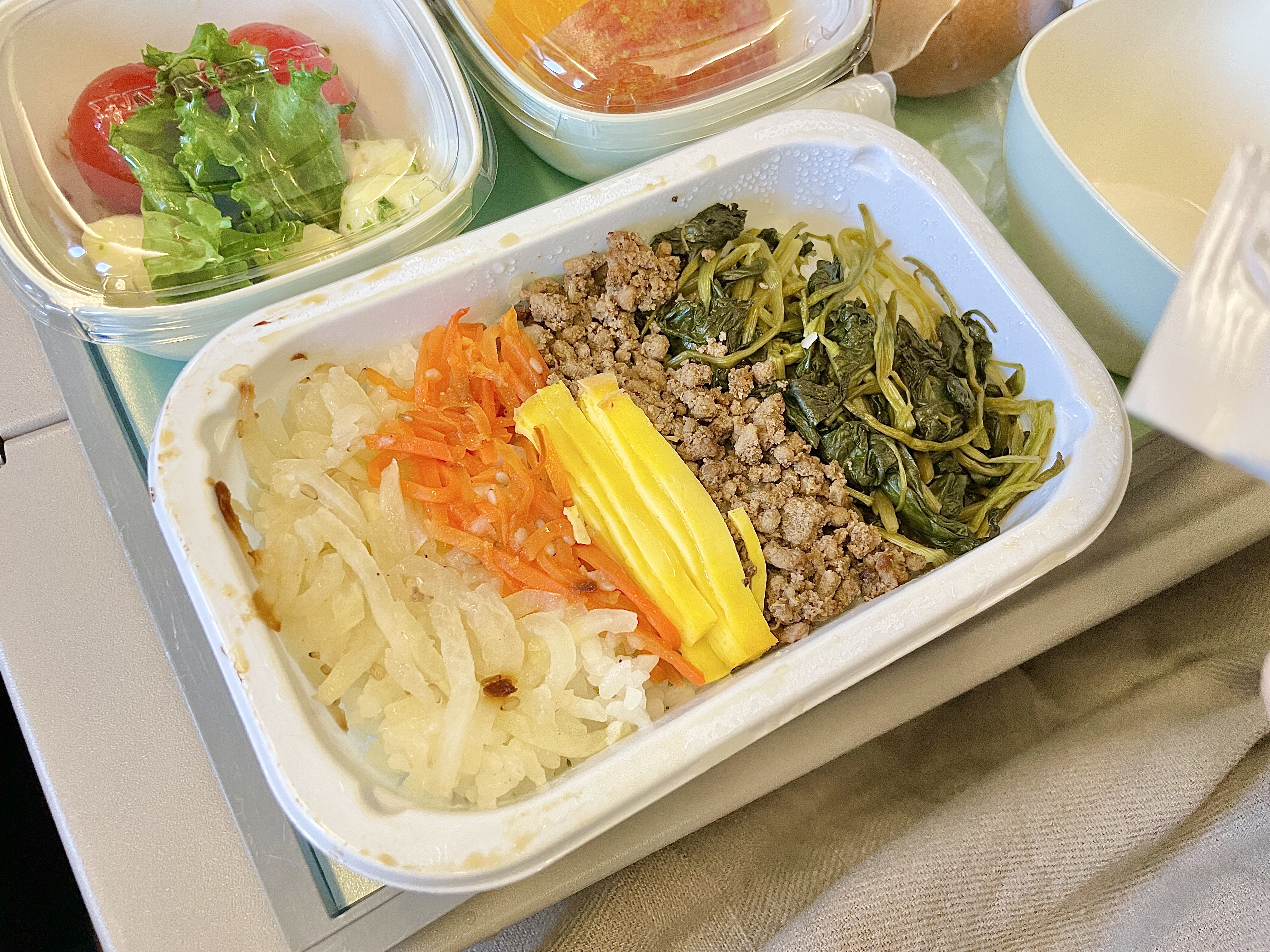 떡지지 않은 밥에 고소한 참기름까지 더해지니 을마나 맛났게요♥ 풍경까지 너무 예뻐서 기내식이 더 맛나게 느껴지더라고요.