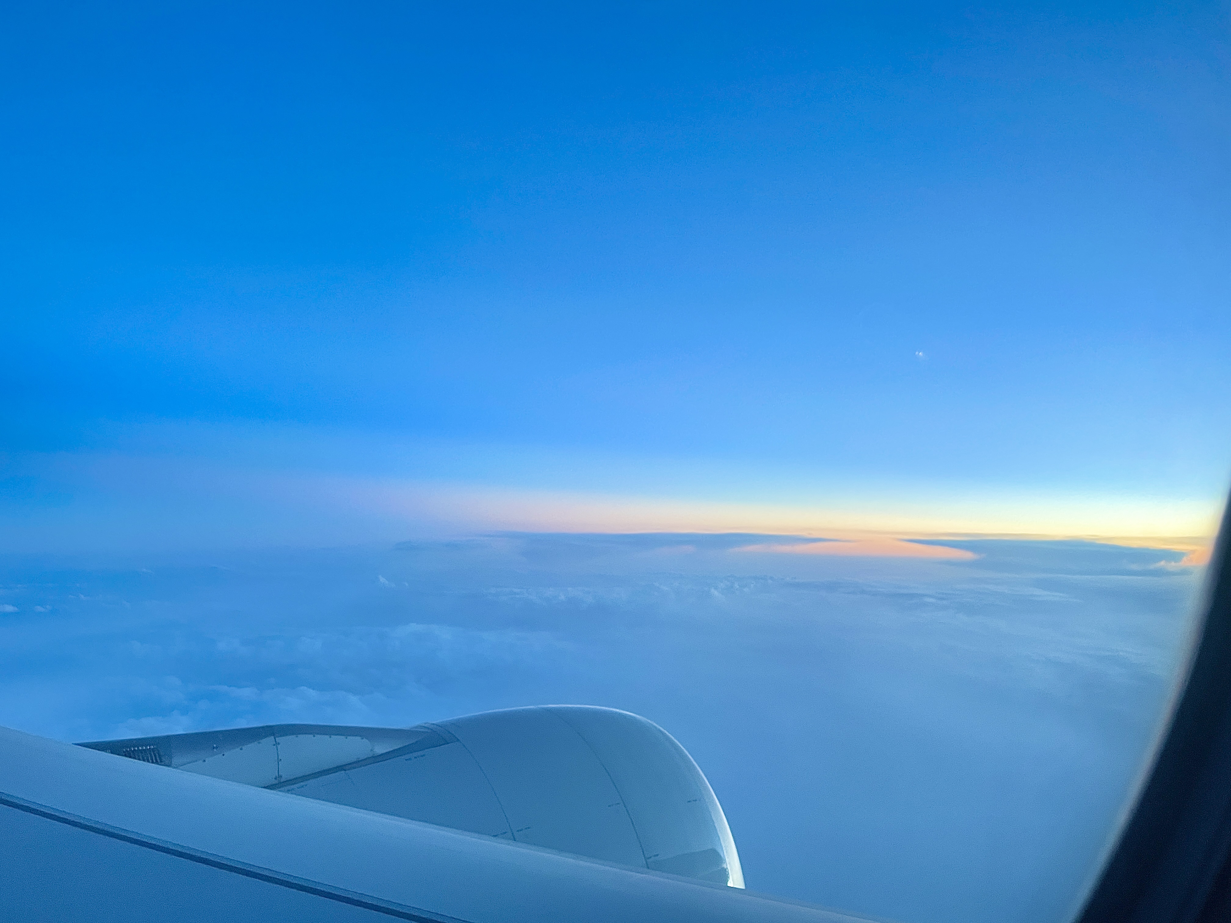 기내식 먹고 밖을 보니 해가 뜨기 시작했어요. 아침 도착은 처음인데 하늘이 너무 예쁘더라고요.