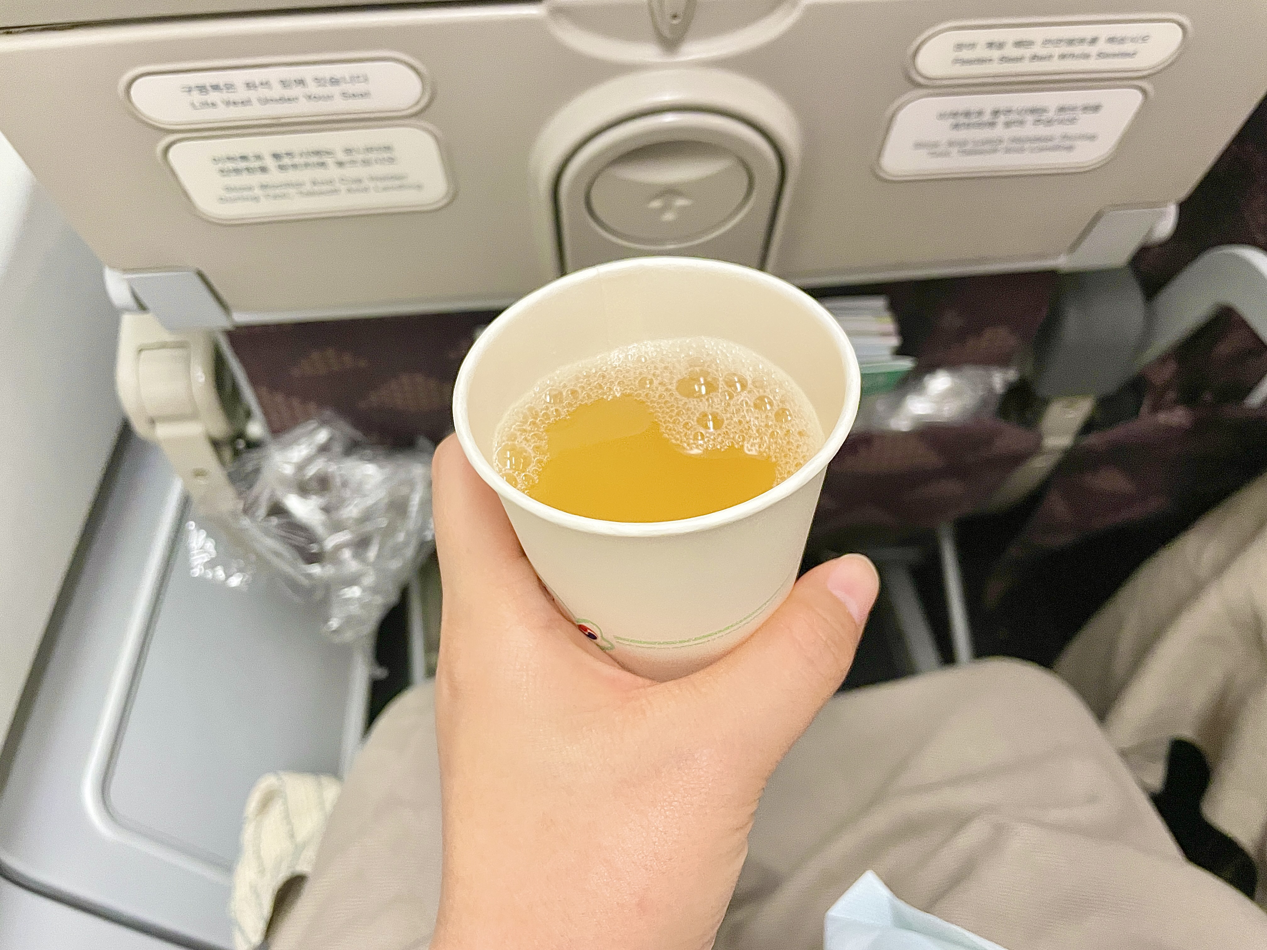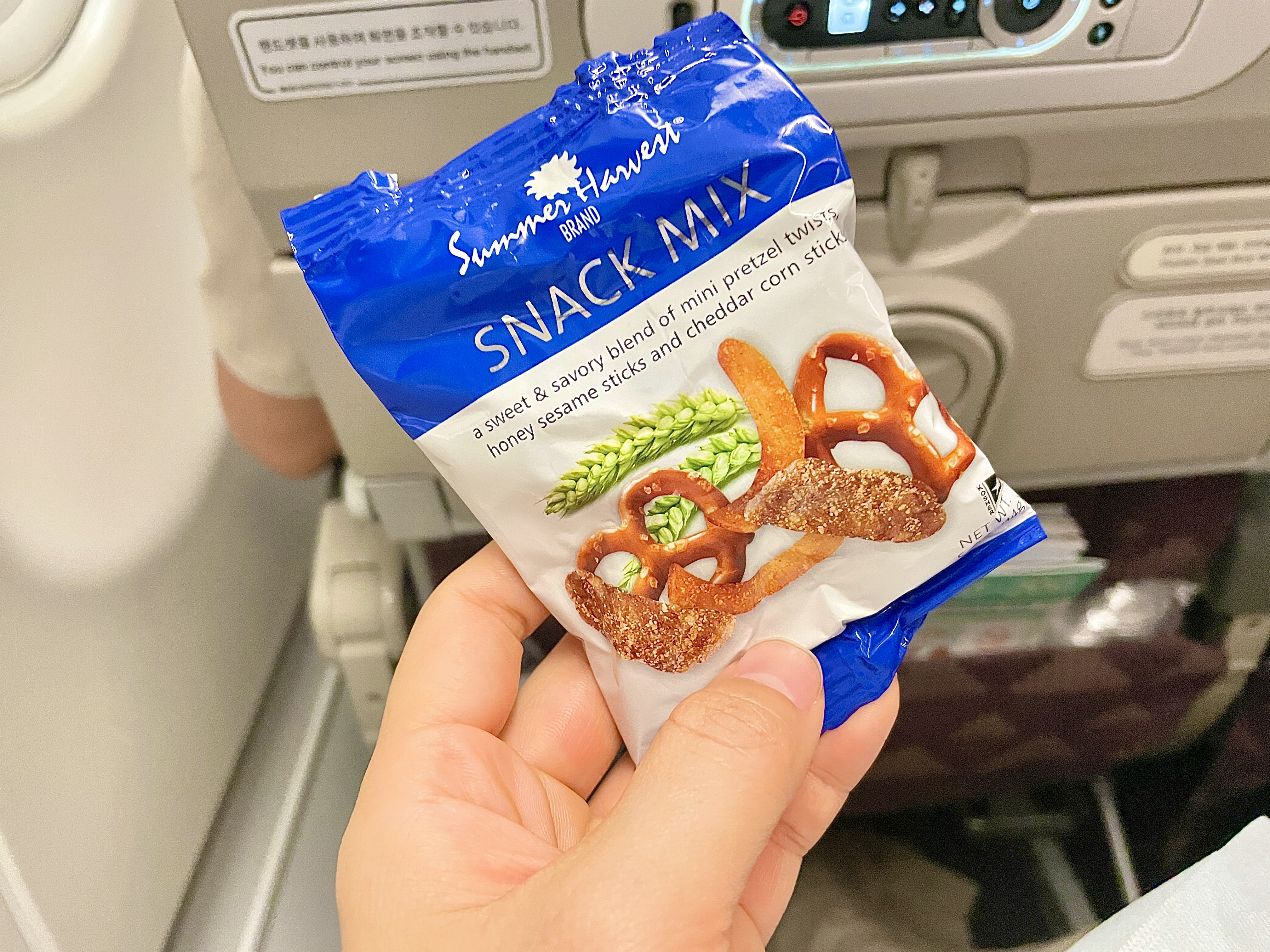 치앙마이에서 인천으로 돌아오는 대한항공! 돌아올때는 밤 비행기라서 간식이랑 음료 하나 건네주고 불을 모두 끄더라고요. 잠잘 시간~