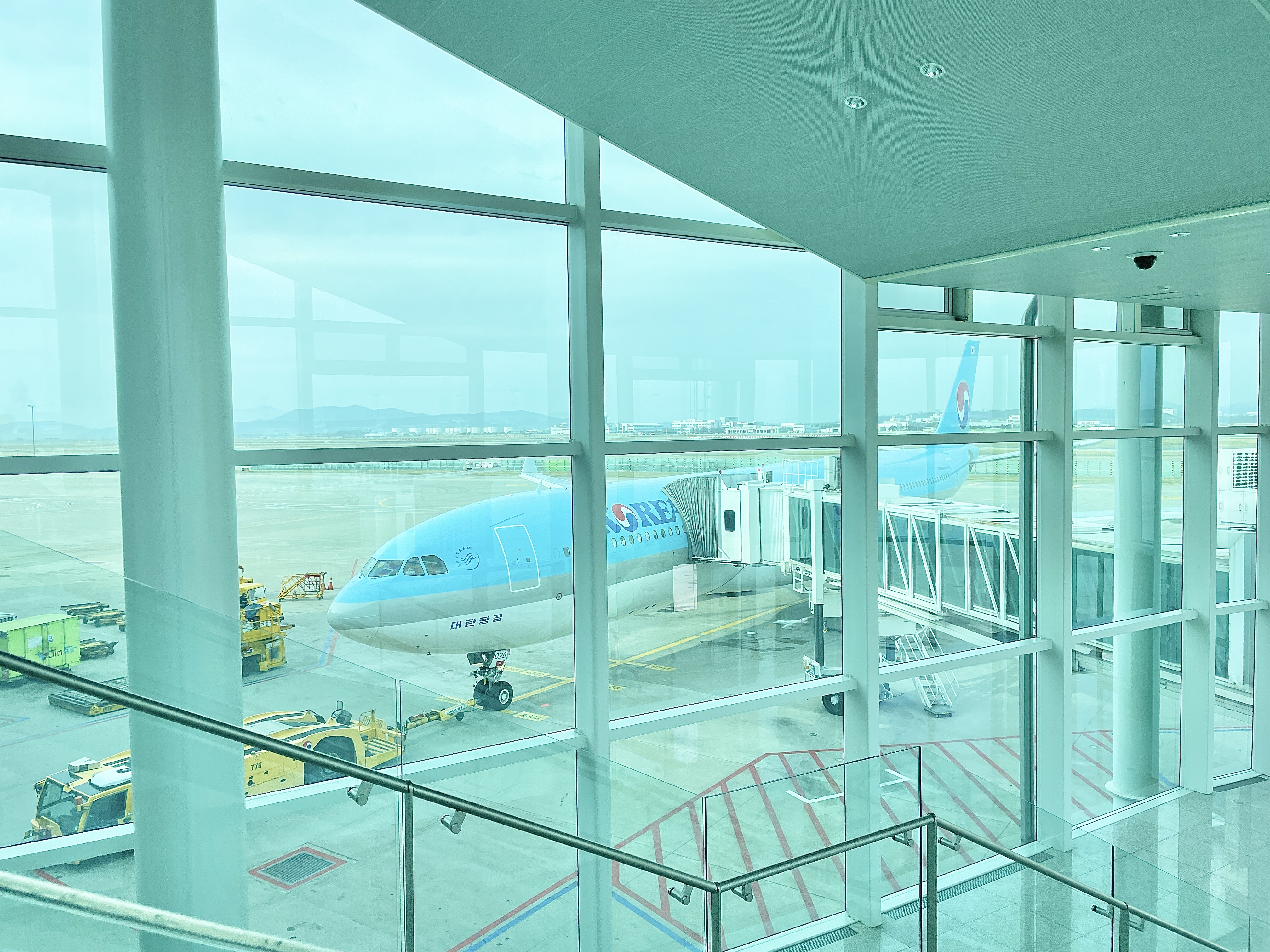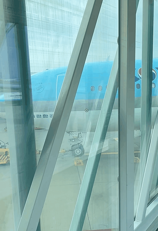 인천공항 제 2여객터미널 도착! 출발 시간 10분 전 탑승 완료. 지연 없이 바로 출국했어요. 역시 대한항공 ♥