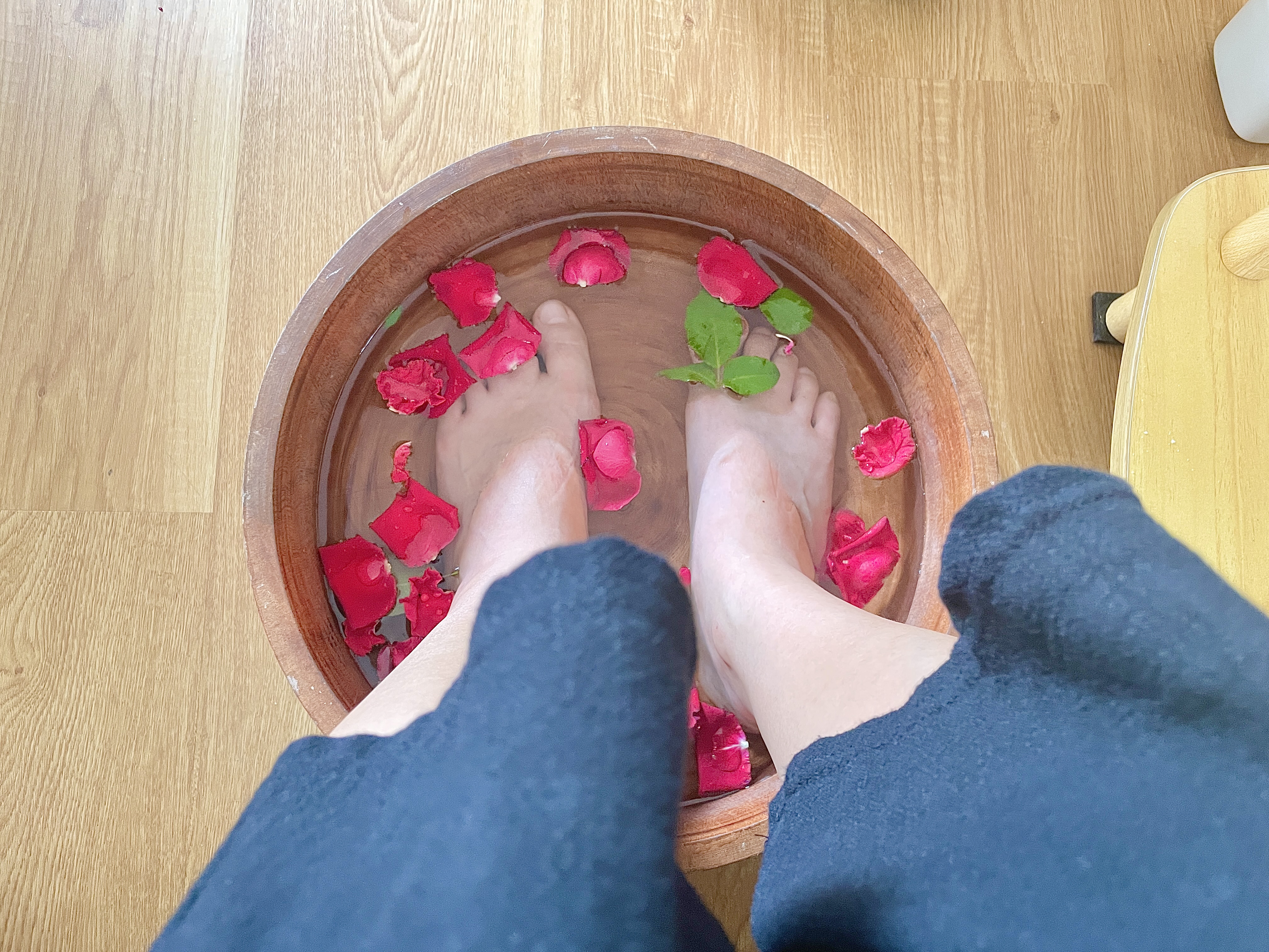 따뜻한 물에 장미꽃잎이 동동 떠 있는 물에 족욕을 했다.