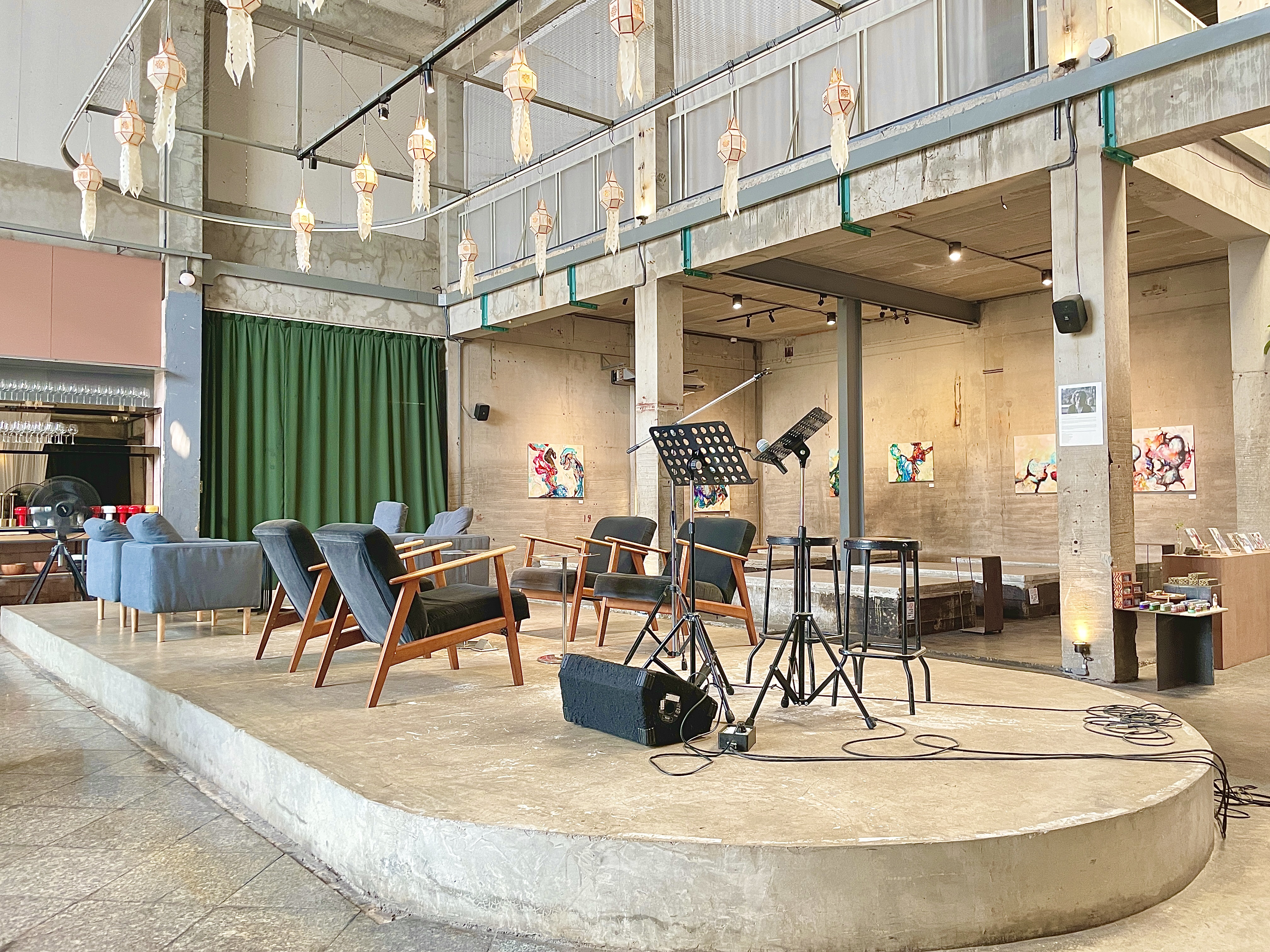 한 켠에는 밤이 되면 열리는 바가 있었고 가운데는 악기들이 있어서 공연도 하는 것 같았다.