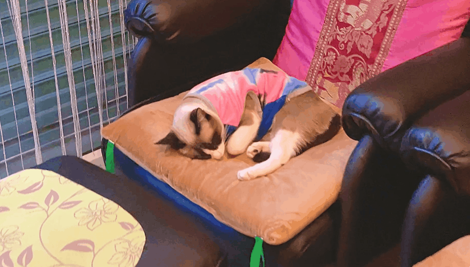 마사지샵 안으로 들어가자 샵에서 키우는 고양이가 쿨쿨- 잠을 자고 있었다.