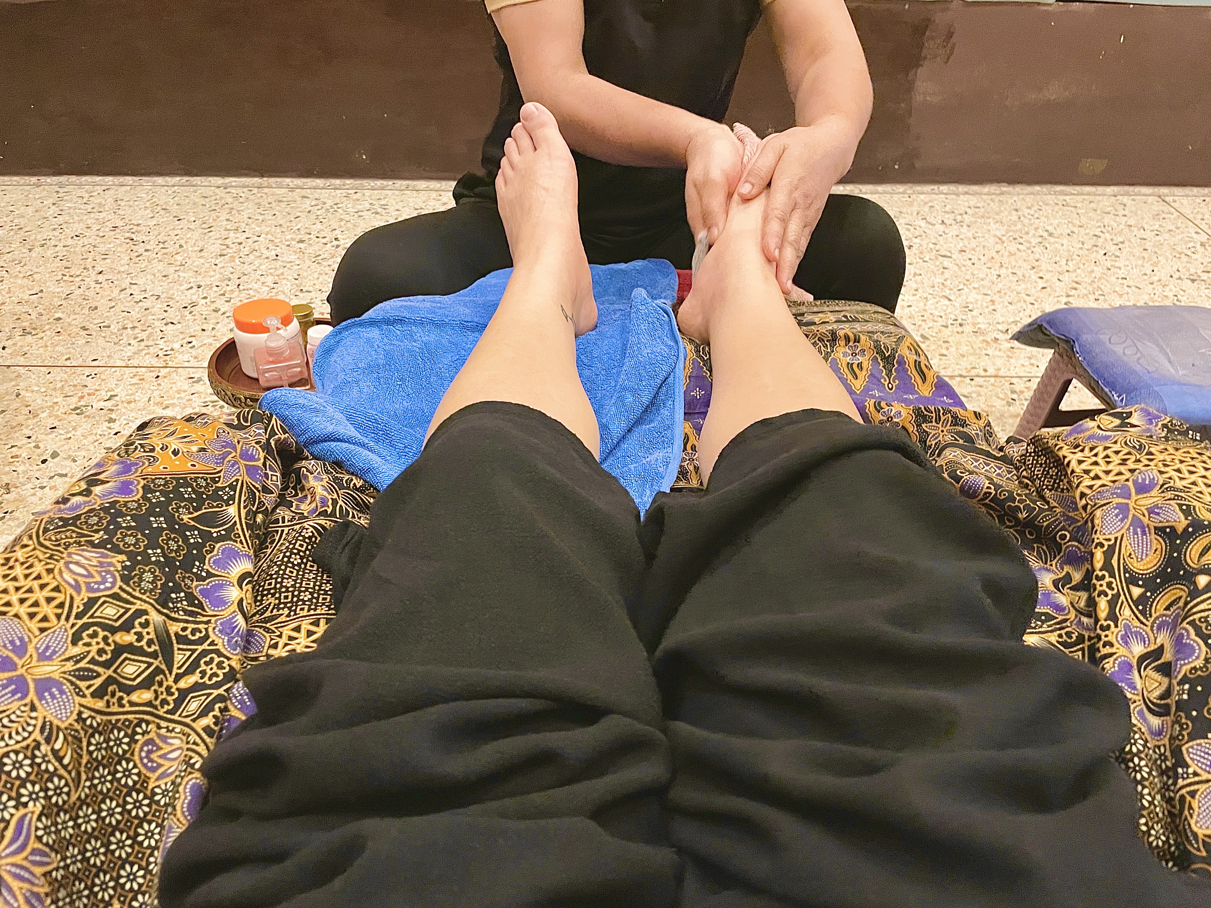 오일을 이용해서 무릎 아래로 한 시간동안 마사지를 받았다.