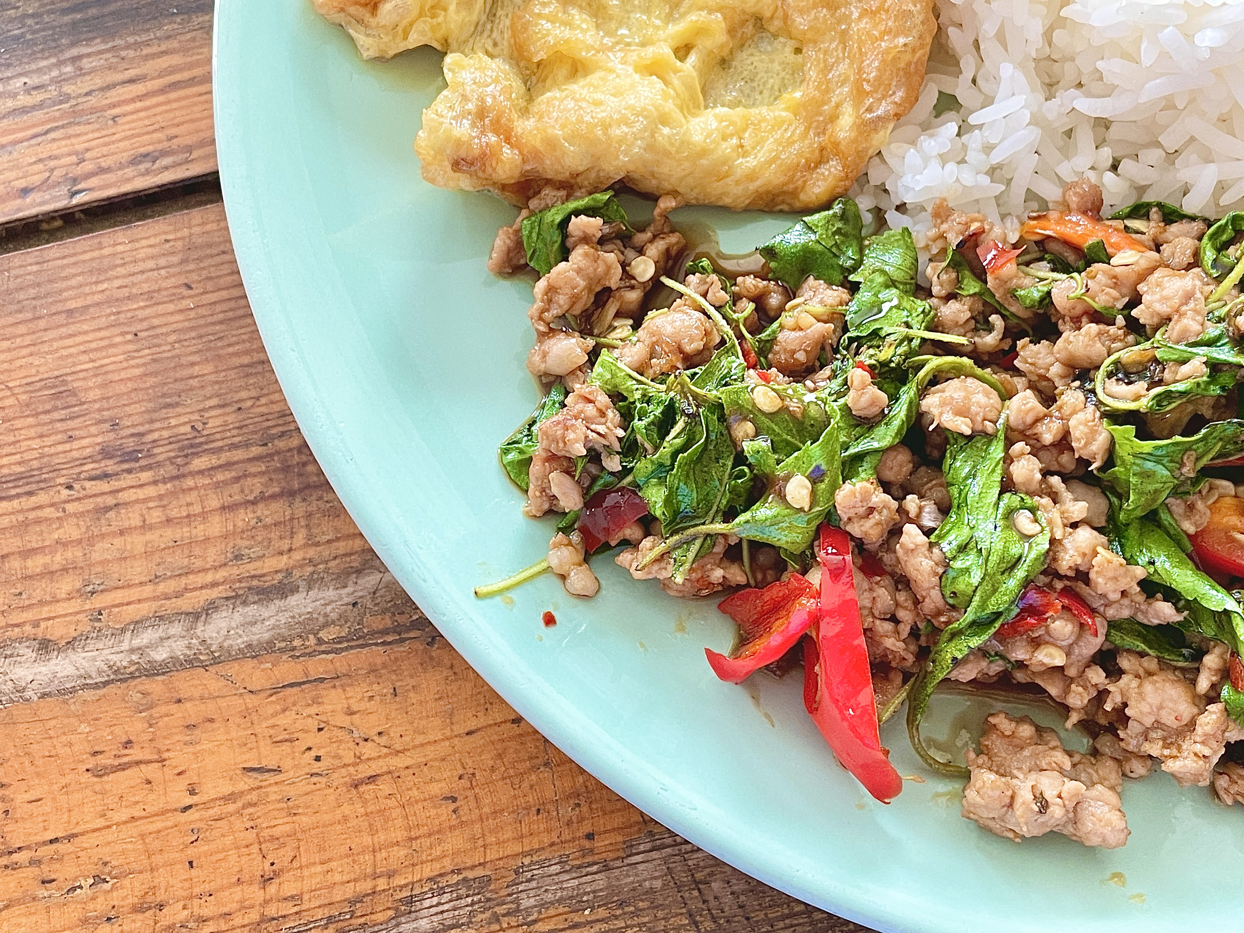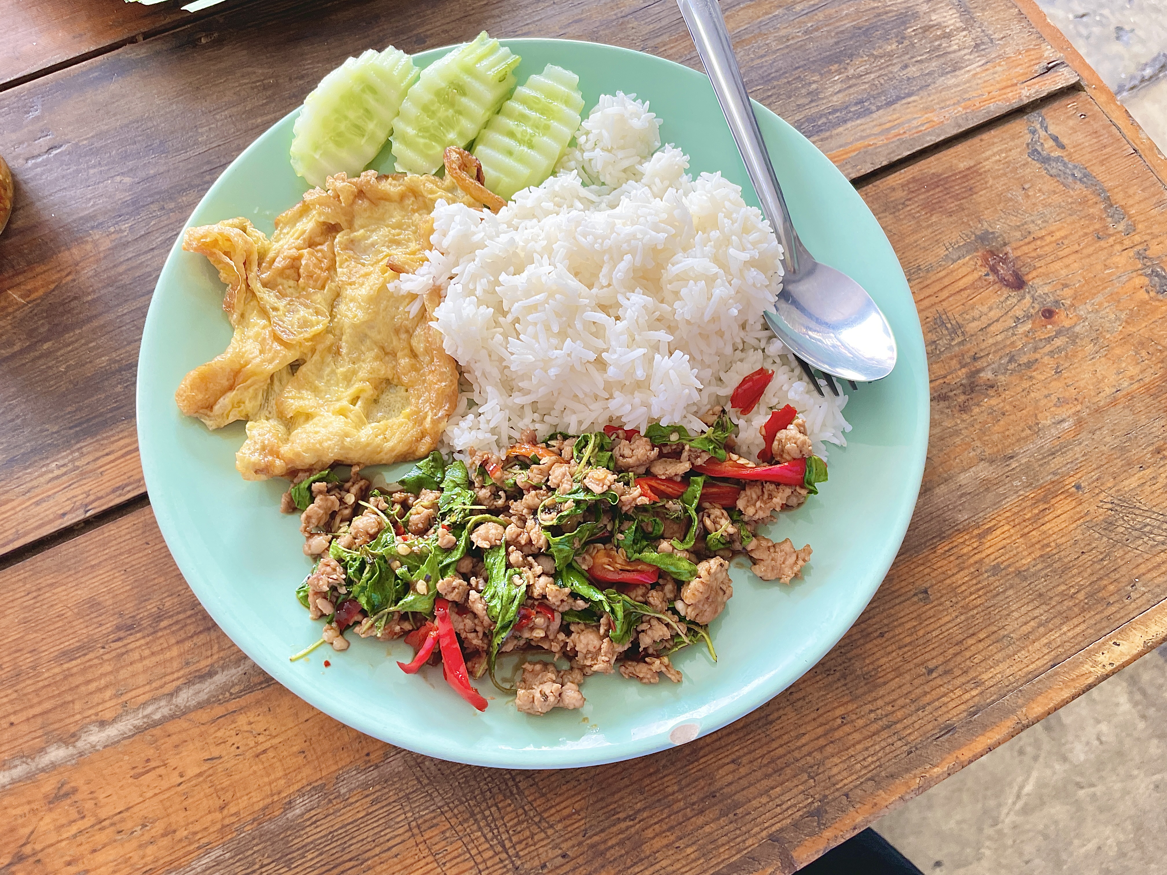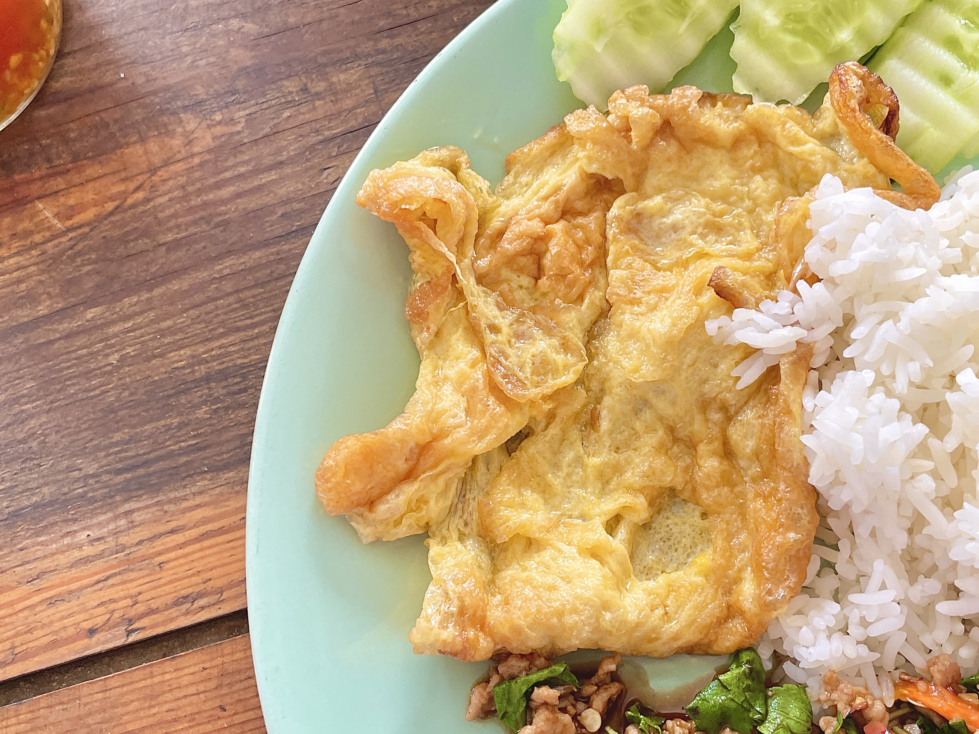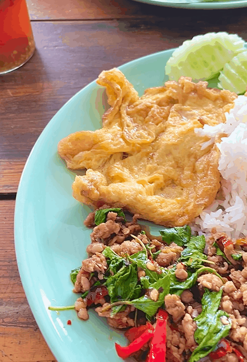 팟카파오무쌉에 올라가는 계란은 오믈렛과 계란후라이 중 선택할 수 있었다. 지금까지 먹었던 팟카파오무쌉에는 주로 계란후라이를 올려 먹어서 이번에는 오믈렛으로 선택!