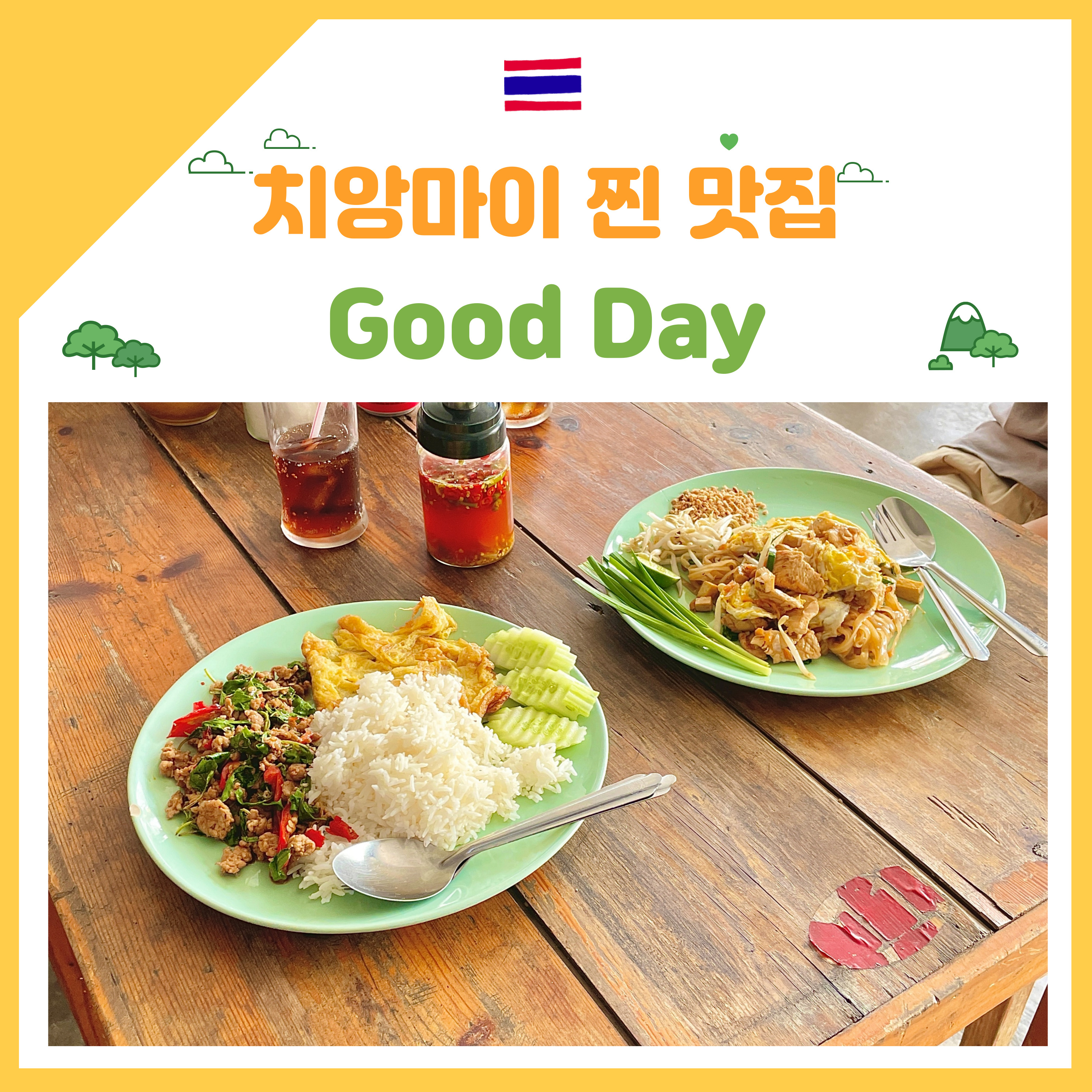 치앙마이 왓 스리 수판 근처에 있는 Good day 식당은 가격이 저렴한 편인데 양도 넉넉하고 맛도 좋은 곳이었다. 이 곳은 정말 많은 사람들이 먹어보았으면♥