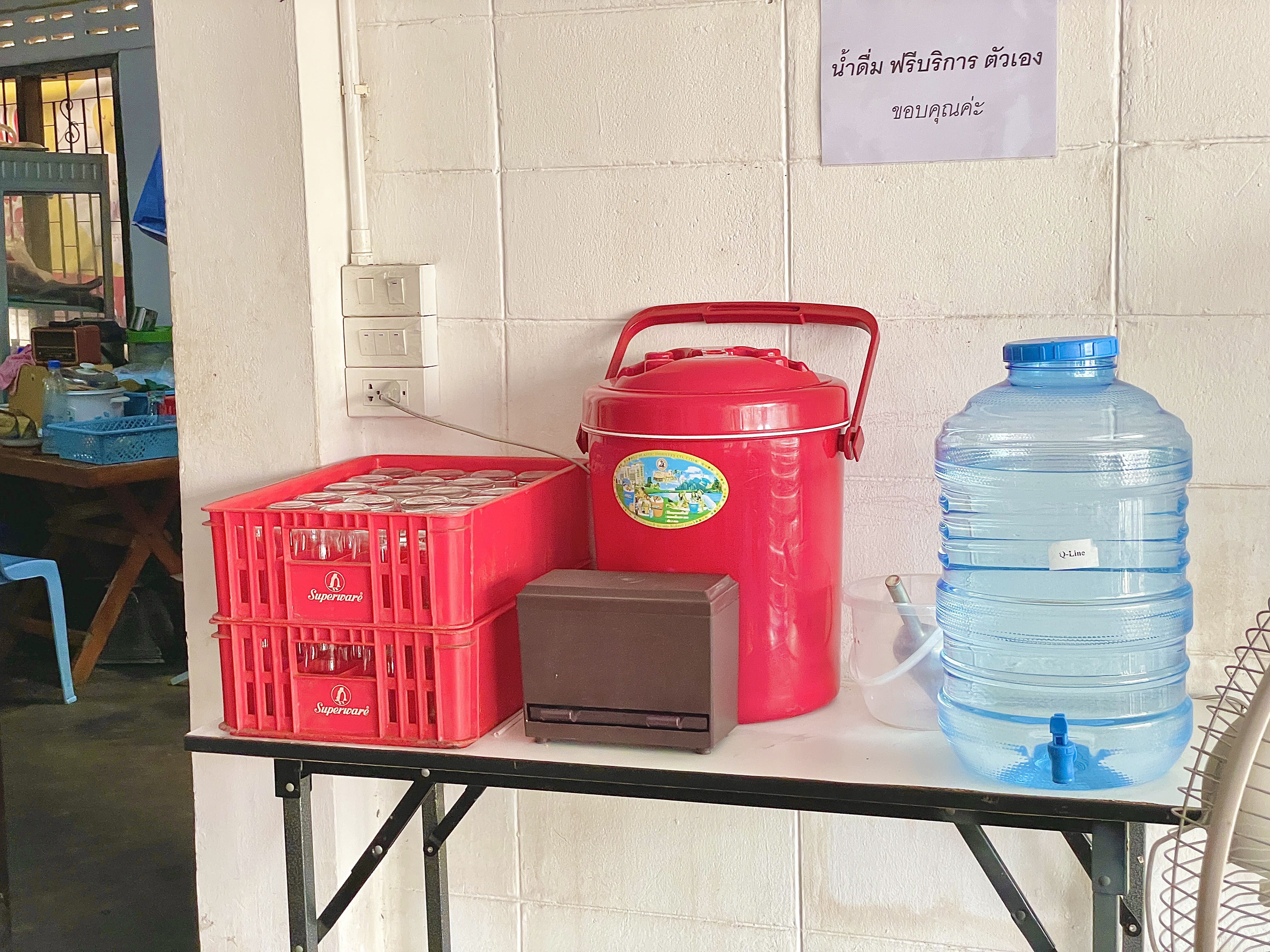 물은 셀프! 한 쪽에는 얼음통이 있어서 얼음을 덜어 물을 담고 시원하게 한잔 ♥