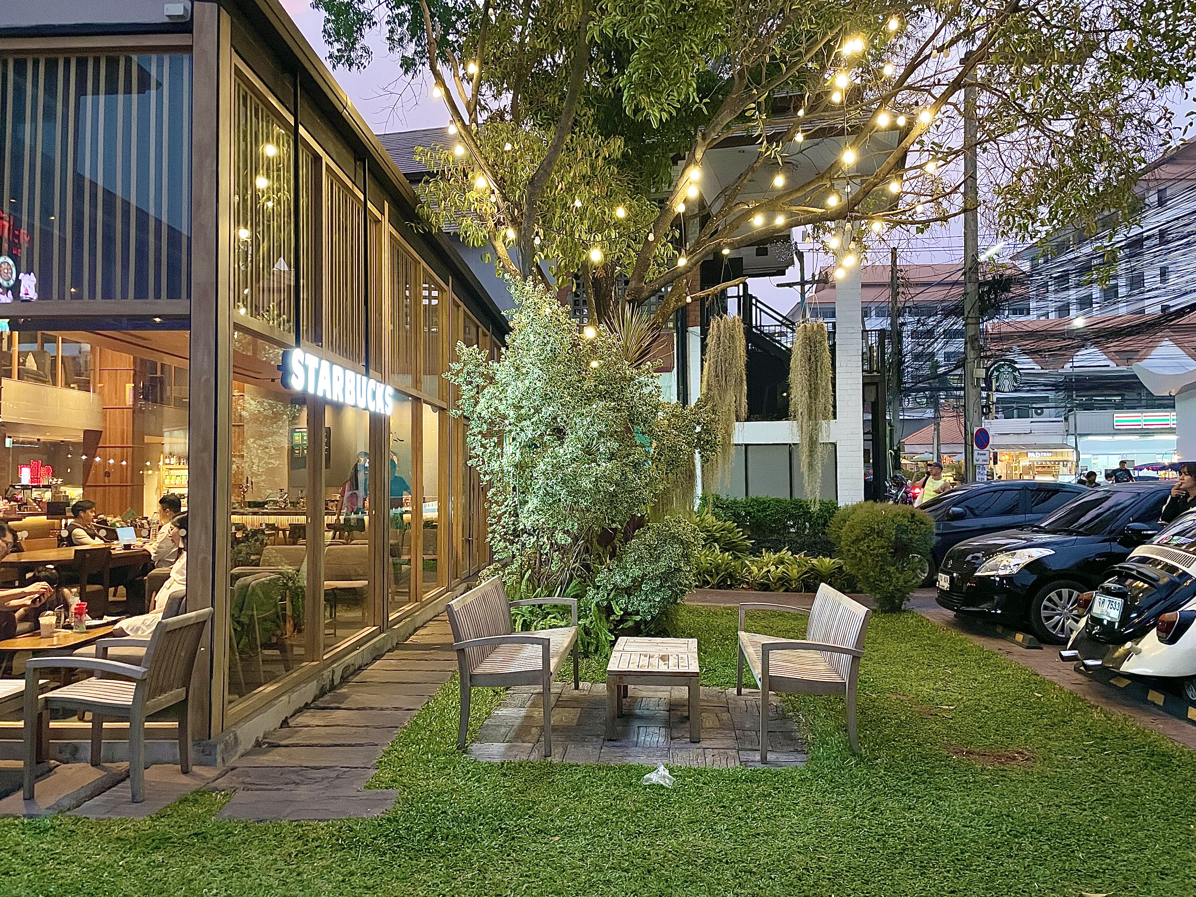원목으로 인테리어딘 외관이 치앙마이와 너무 잘 어울렸다. 건물이 예쁘고 내부 분위기도 너무 좋았었던 스타벅스.