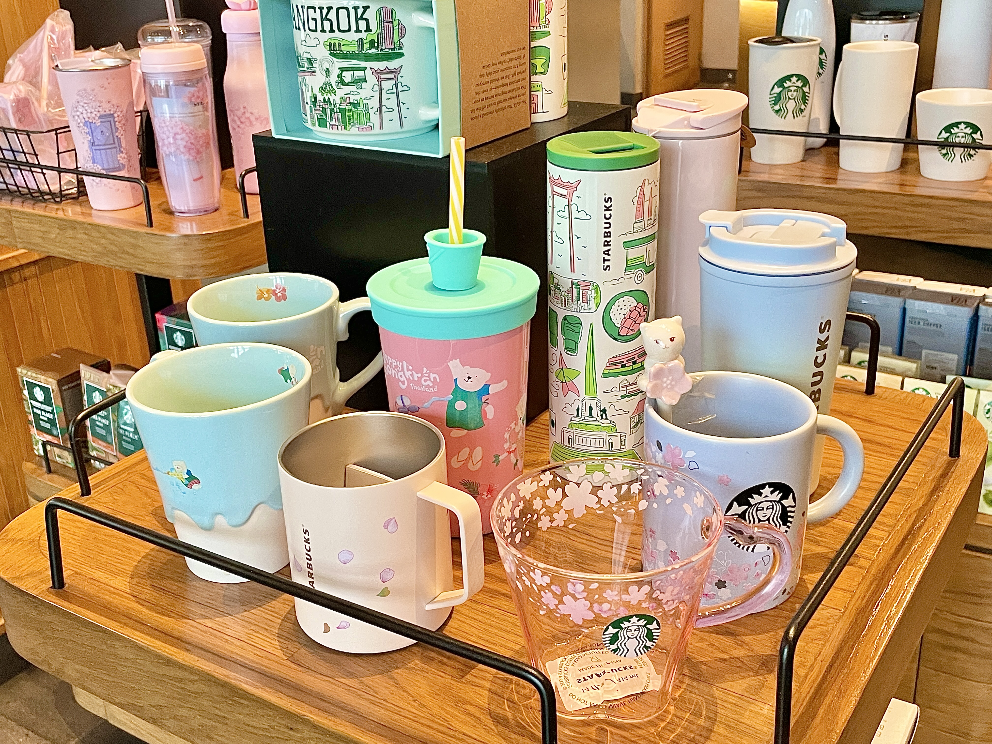 커피를 주문하고 기다리는 동안 텀블러 구경. 치앙마이 분위기를 즐길 수 있는 텀블러 하나 구매하고 싶었는데..., 나오는 순간 잊어버리다니.