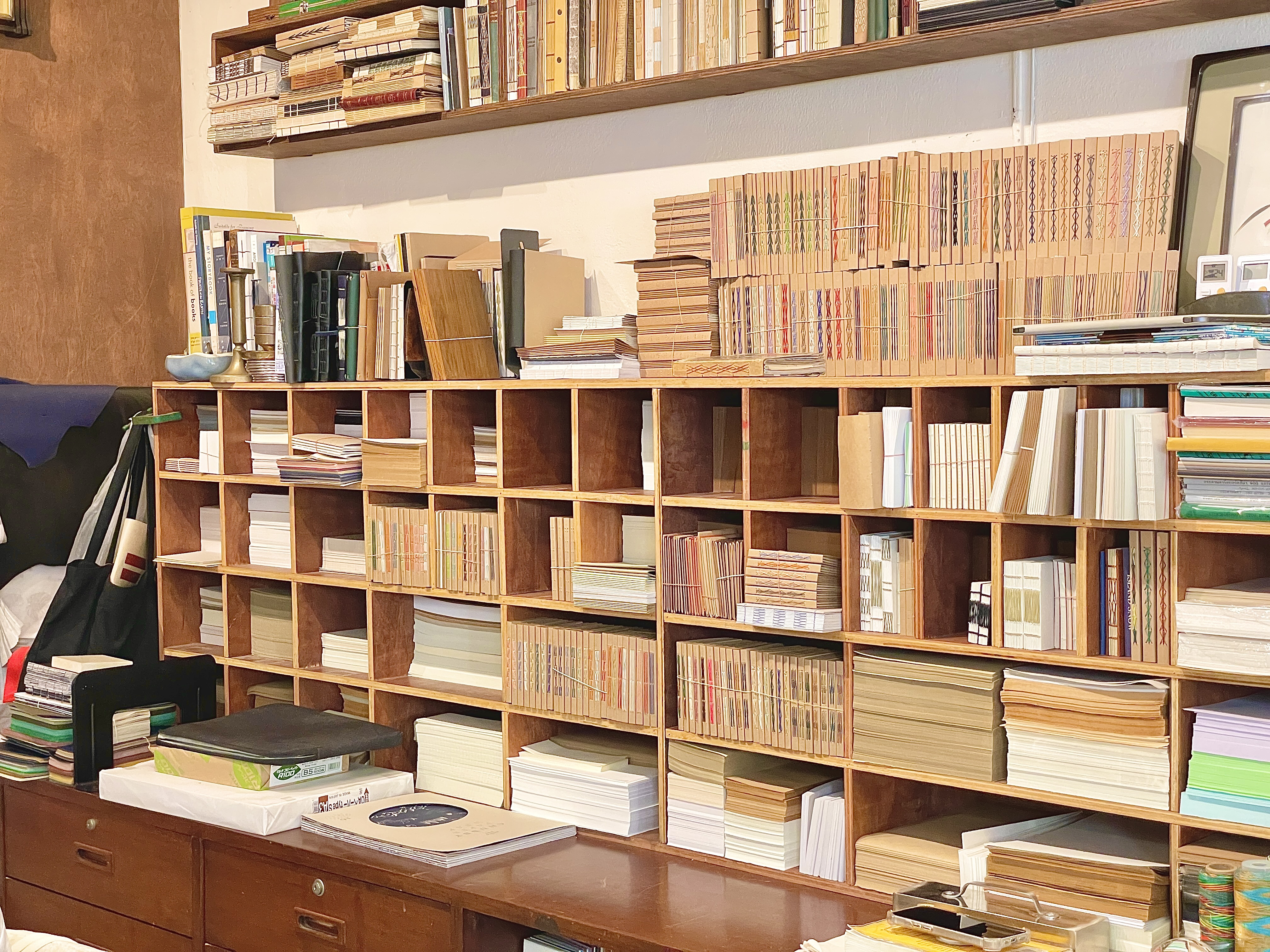 매장 내부에는 투박한 나무 책장에 책들이 꽂혀 있었고 사장님으로 보이는 한 분이 바인딩 노트를 작업중이었다.
