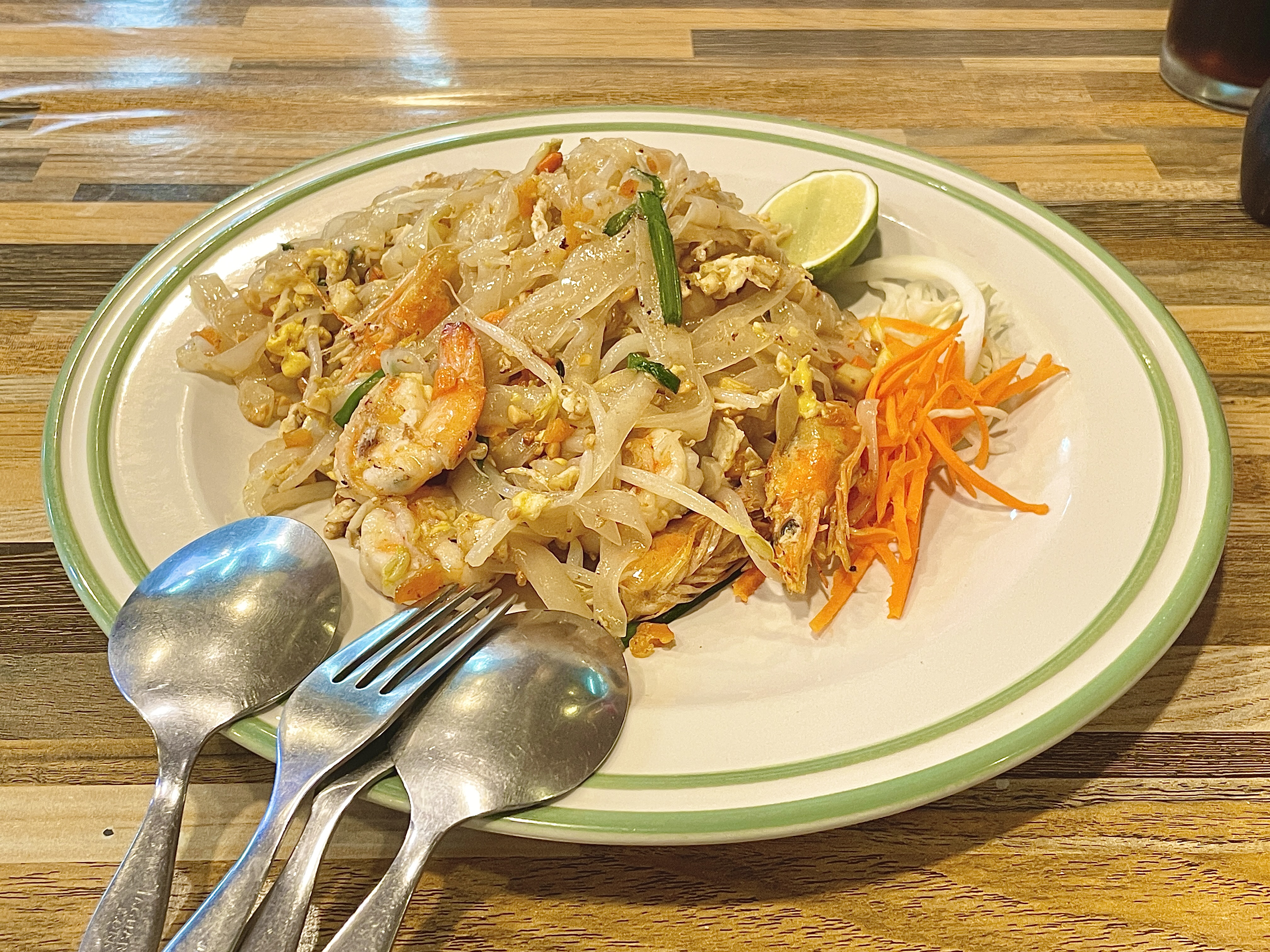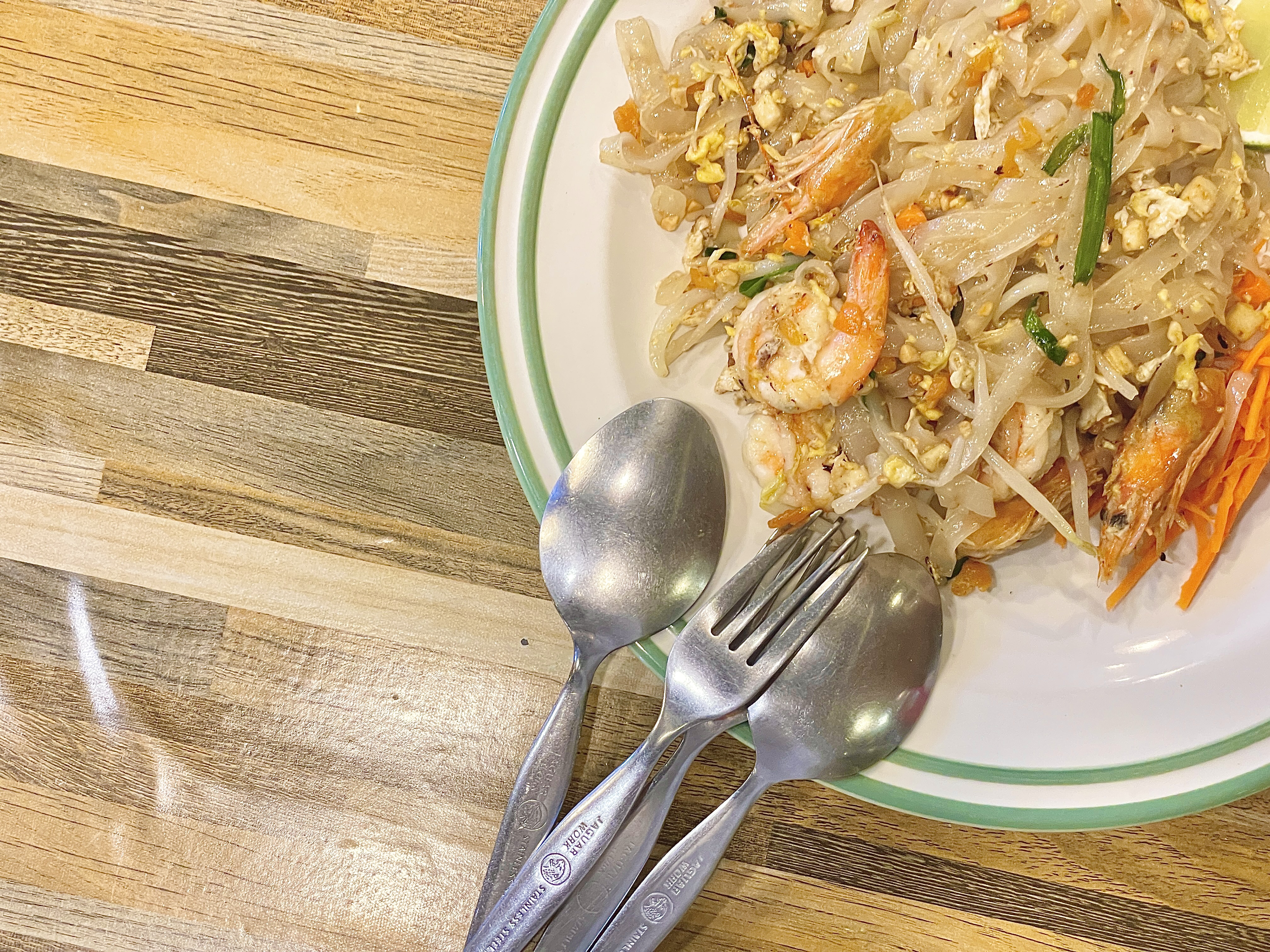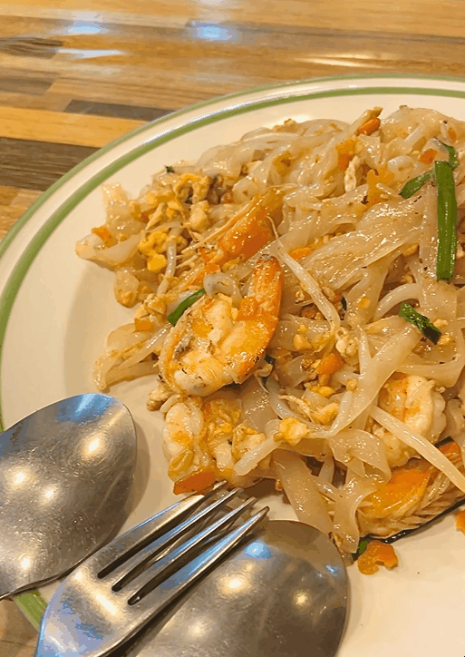 새우 팟타이에는 통통한 새우와 계란, 쌀면이 잘 볶아져 있었다.