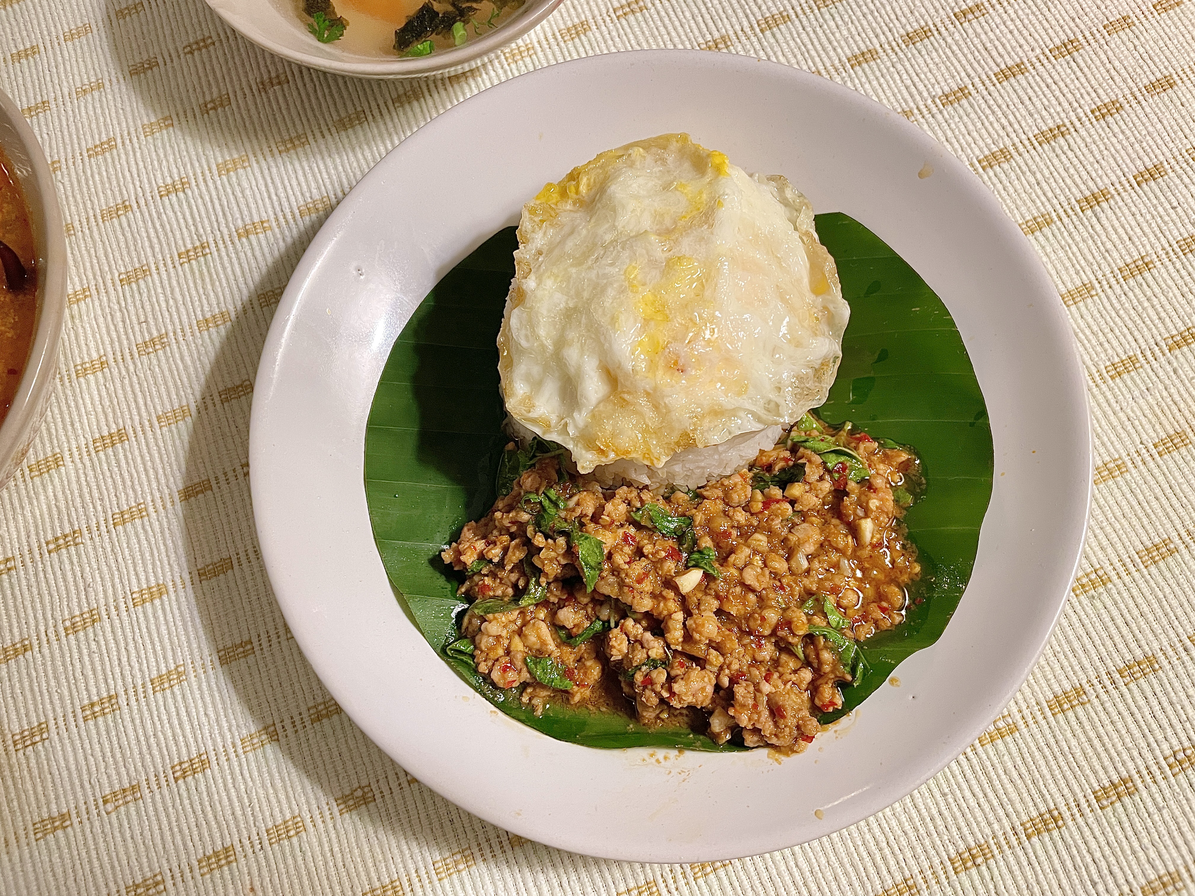 다진 돼지고기에 바질을 넣은 팟카파오쌉에 계란후라이 하나를 얹었더니 짭쪼롬한 돼지고기양념이 중화가 되어 주문하길 잘했다~~~ 싶었다! :)