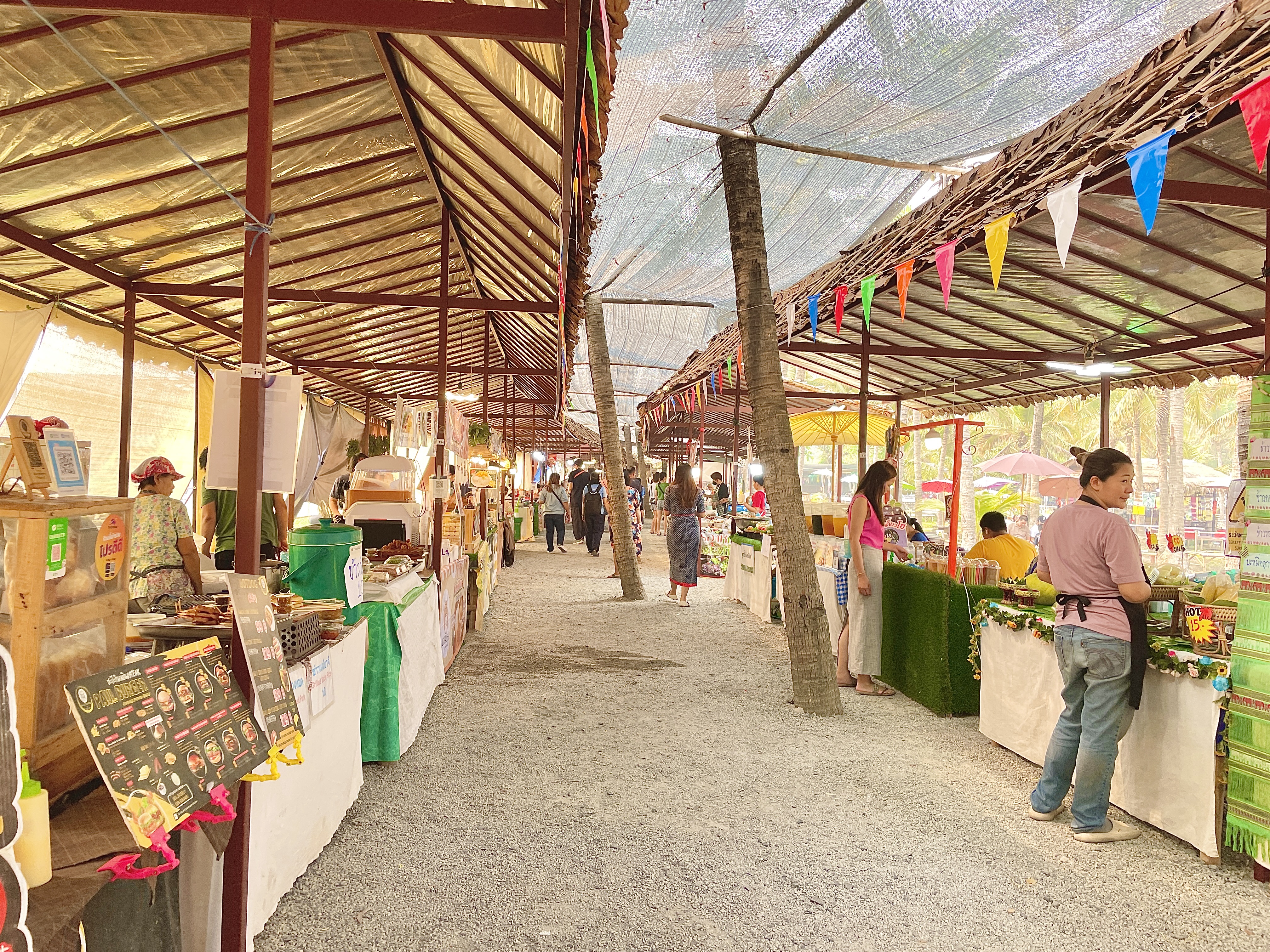 코코넛 농장에서 열리는 플리마켓의 코코넛마켓. 매주 토,일 열리는 주말마켓으로 아침 일찍 오픈을 했다. 조식을 먹지 않고 가시길 추천!!