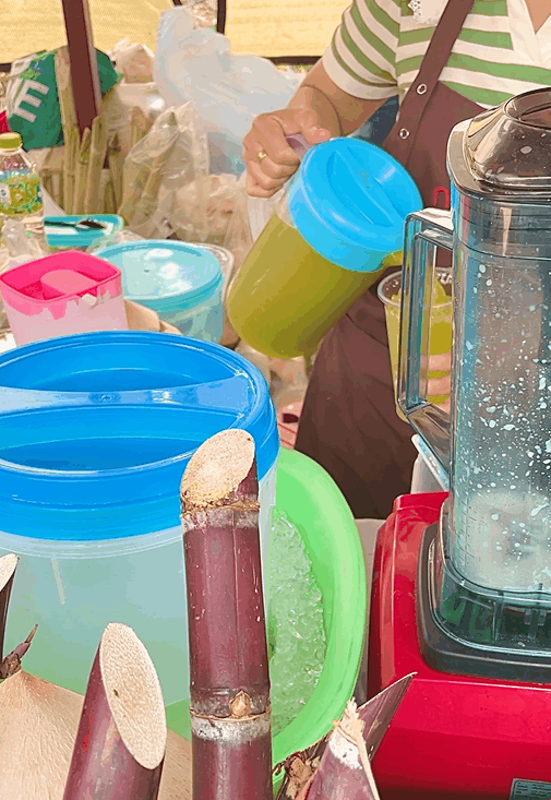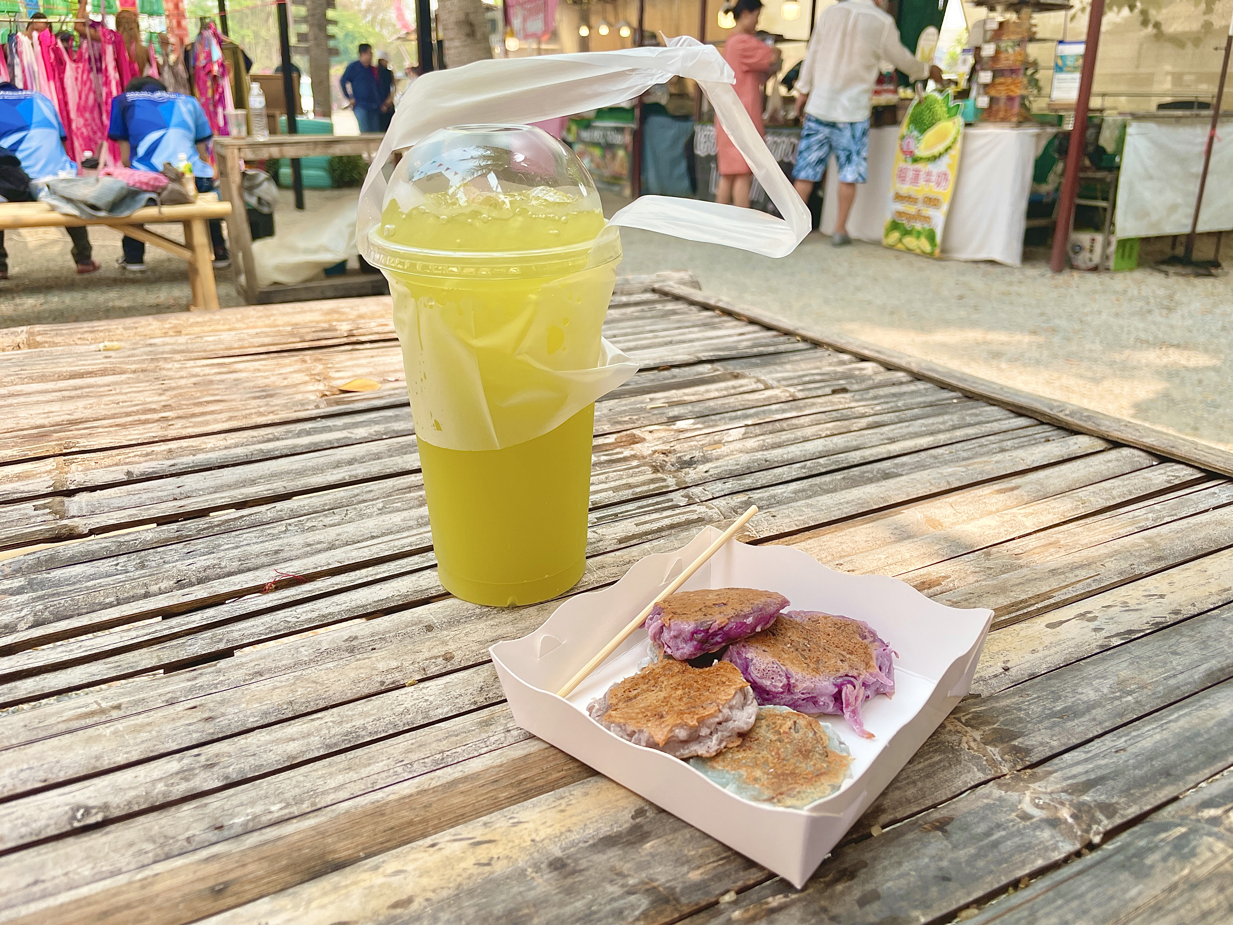 가격도 싼데 쫀득쫀득하면서 오독오독 씹히는 코코넛팬케익도 꿀맛이었다. 입이 개운해지는 사탕수수 음료까지!