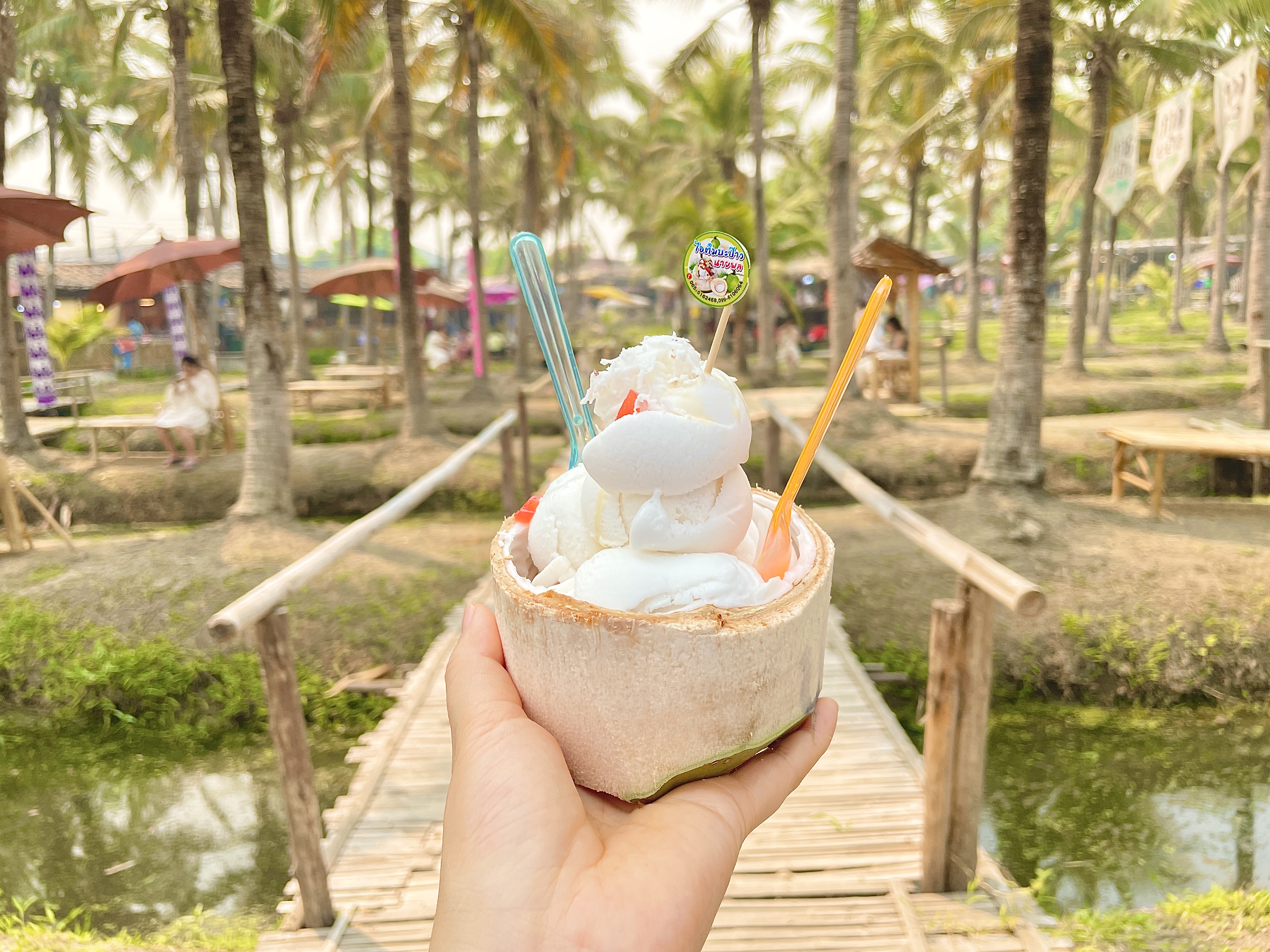 코코넛 과육을 얇게 긁어 놓아 오독오독 씹히면서도 부드러운 맛! 코코넛 식감과 부드러운 아이스크림이 코코넛마켓에 가면 꼭 먹어보면 좋을 디저트였다.