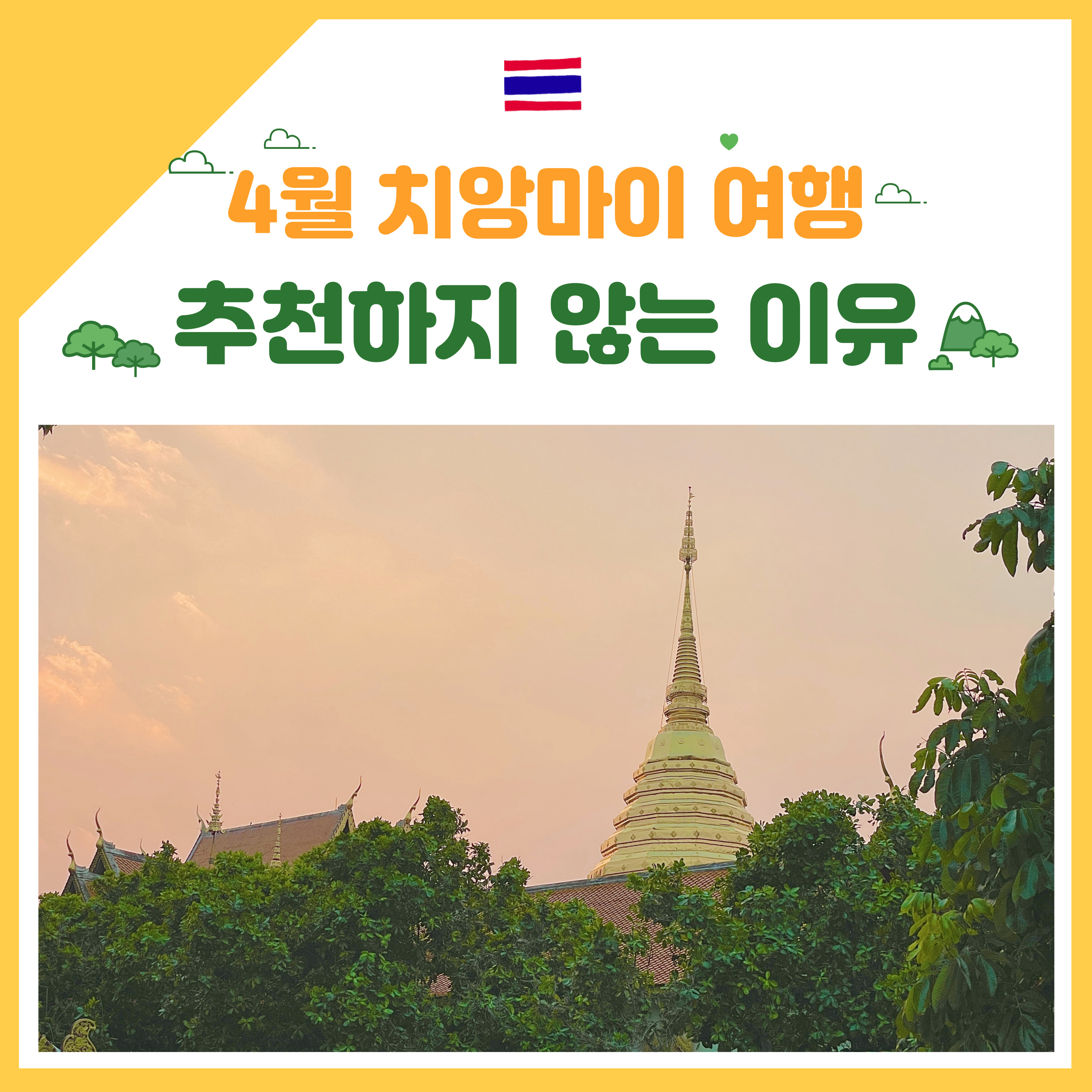 일년 내내 따뜻한 기온의 치앙마이! 12월부터 4월은 건기로 여행하기 좋은 시기지만 내가 방문했던 4월은 화전이 시작되던 시기.